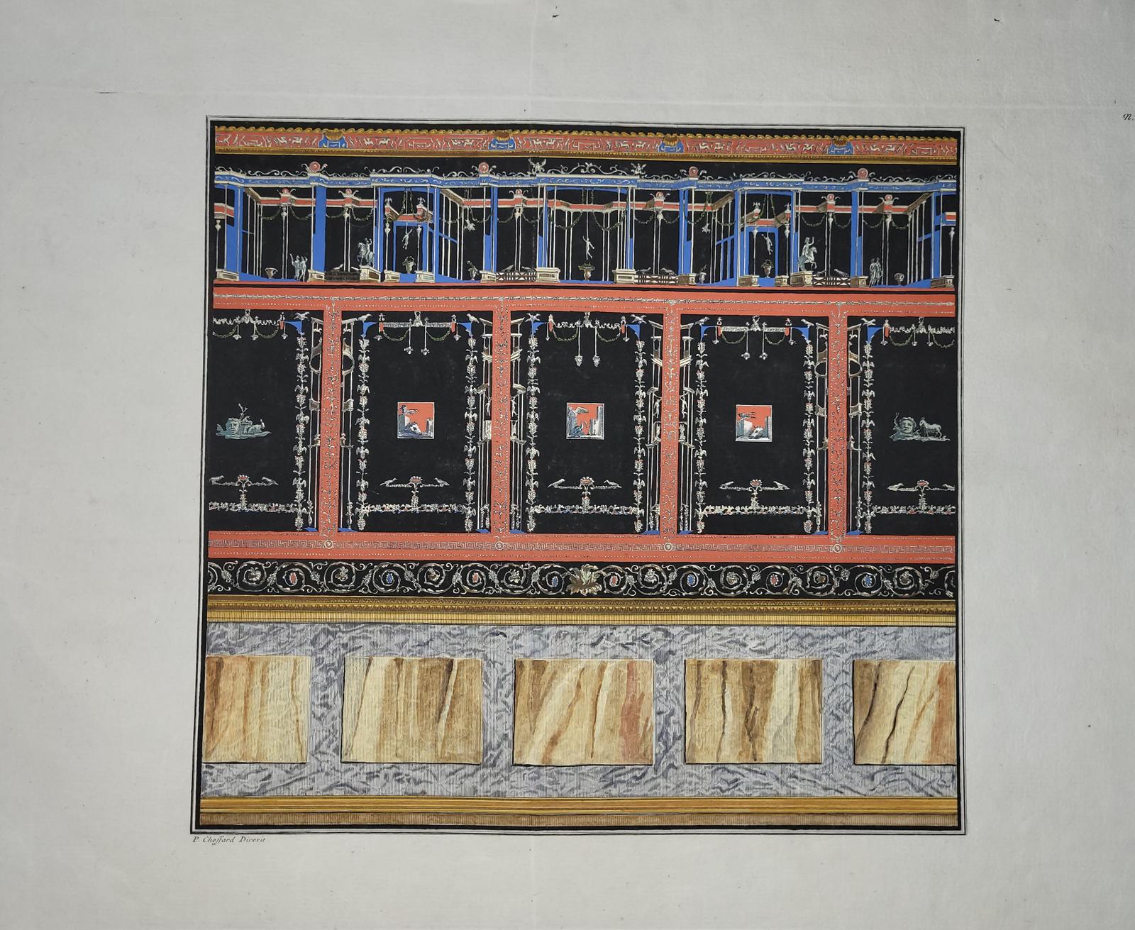 Original Antique Hand Coloured Print, 1780, Wall Paintings Baths of Titus Rome