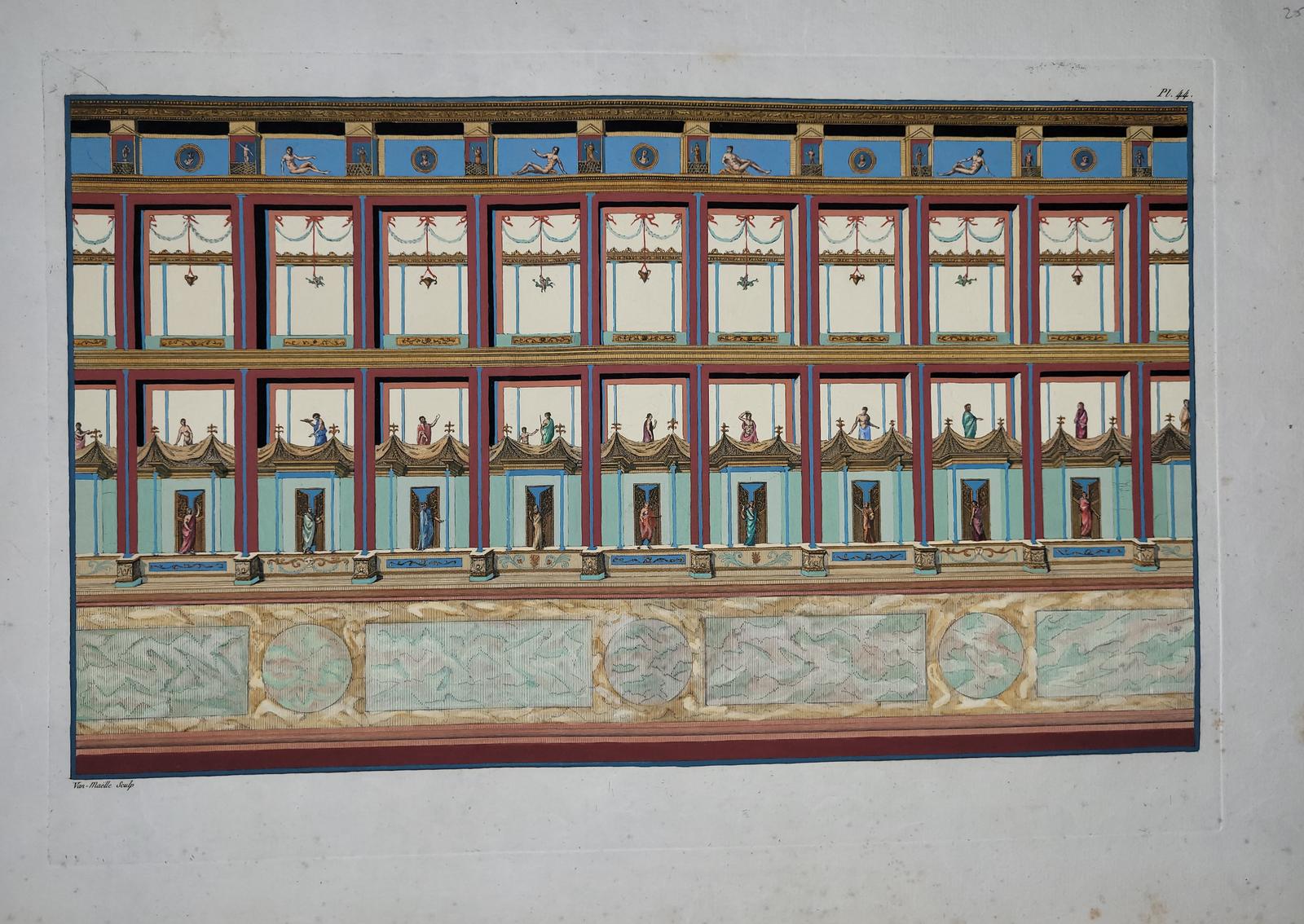 Original Antique Hand Coloured Print, 1780, Wall Paintings Baths of Titus Rome