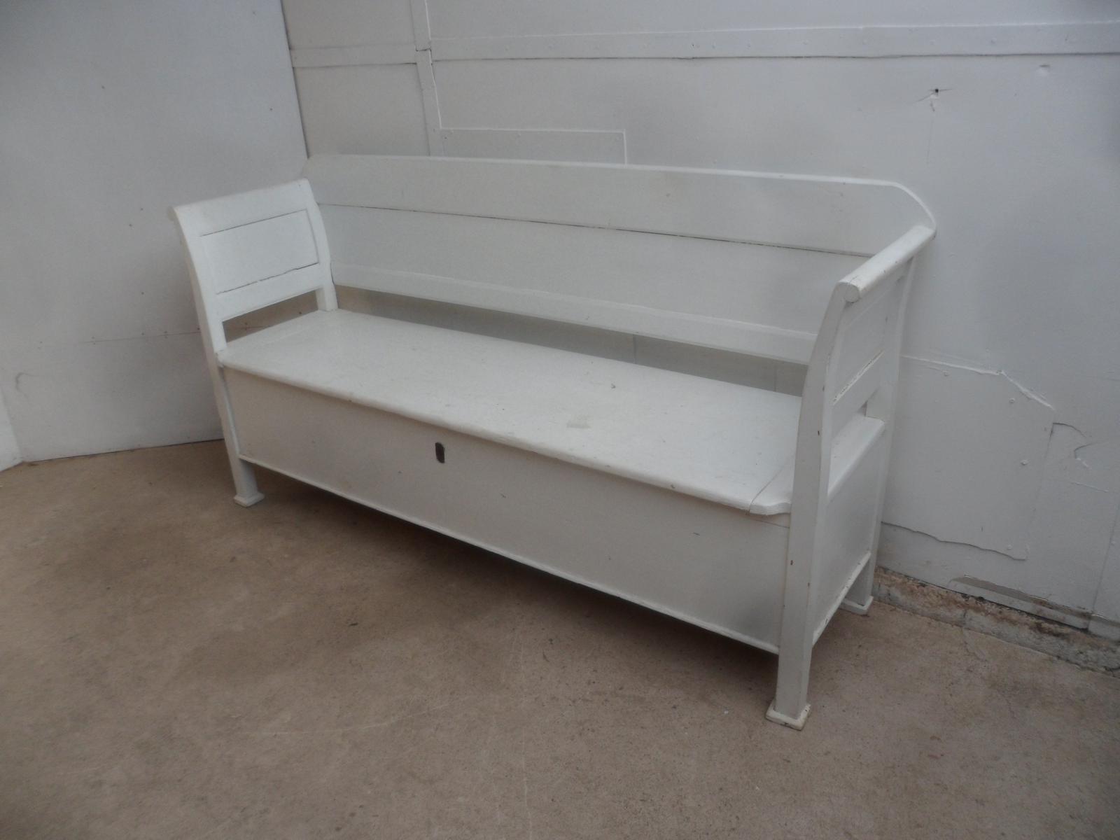 Original Antique Pine Painted White Shabby Chic 3 Seater Box Settle / Bench