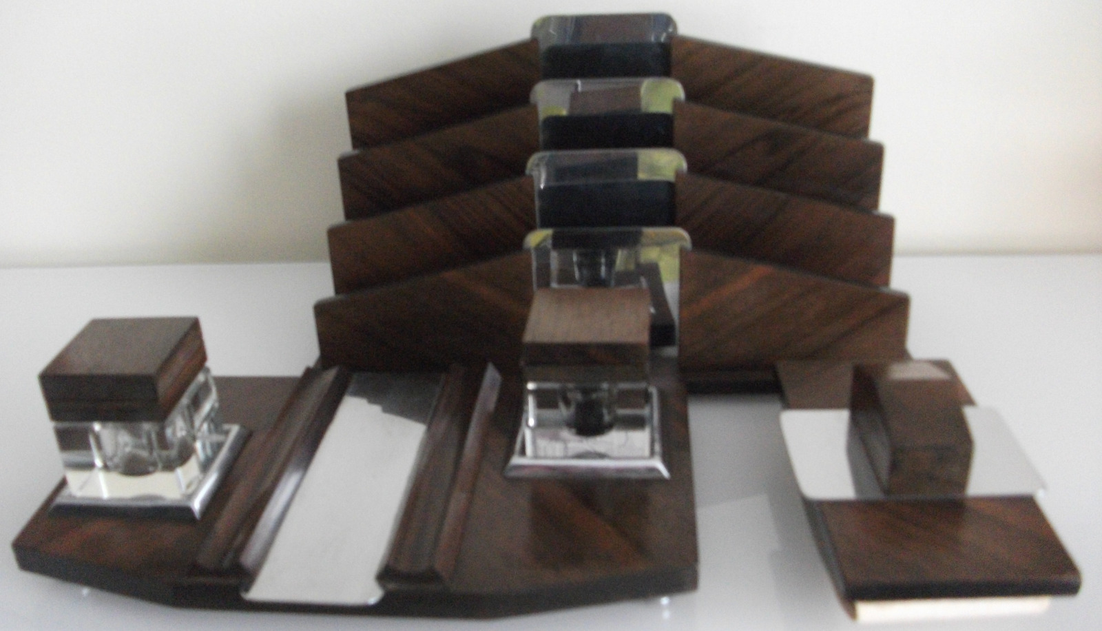 Original Art Deco 1930s French Macassar Wood Chrome Desk Set