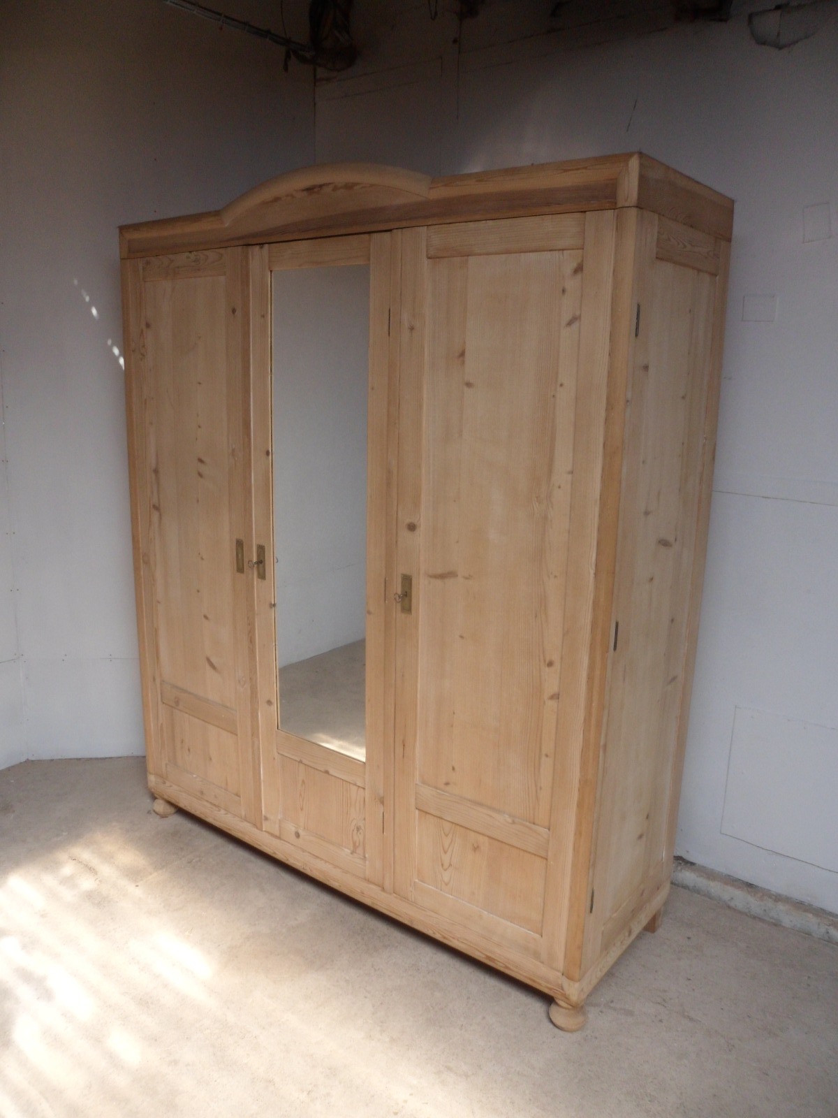 Original Art Deco 1930s Pine 3 Door Knockdown Wardrobe to Wax / Paint