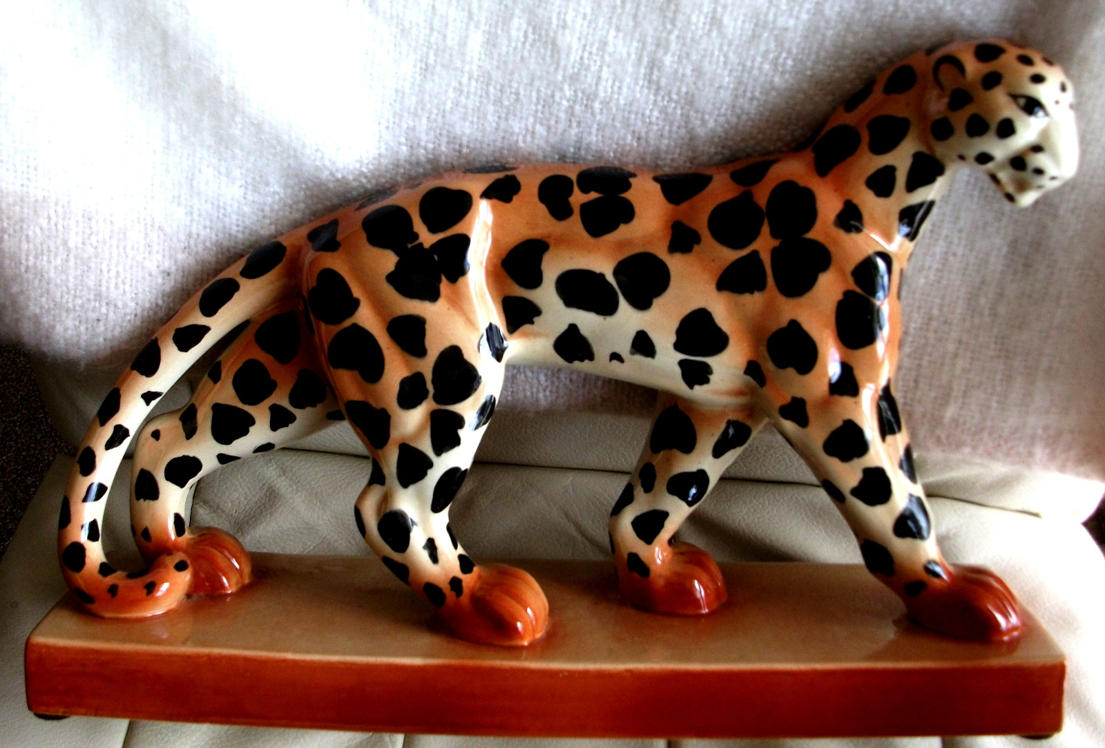 Original Art Deco French Leopard by St.Clement For Lemanceau Ceramic