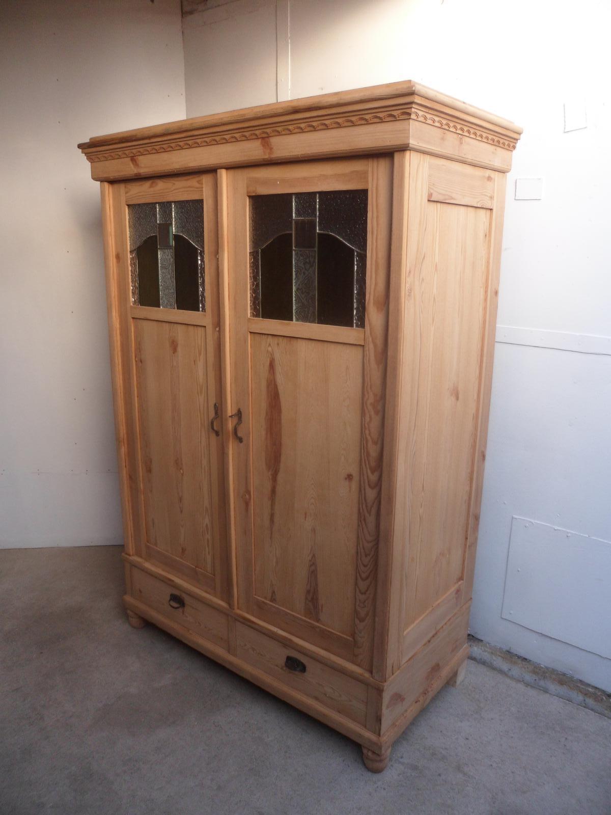 Original Arts & Crafts Antique Pine 2 Door Knockdown Wardrobe to wax / paint