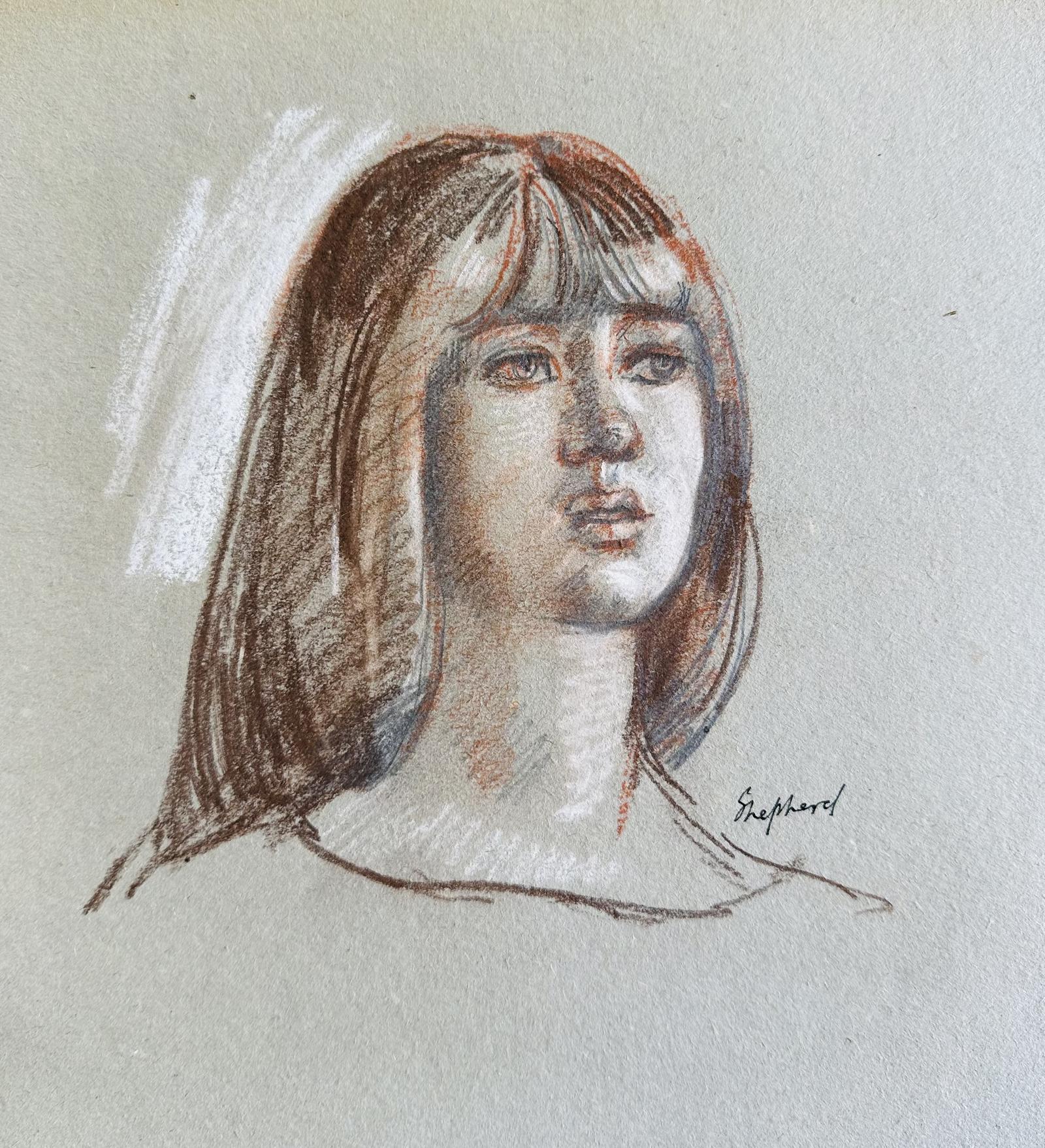 Original Challks and Pencil Study 'portrait' by Toby Horne Shepherd. 190-1993. Signed. C.1965. Provenance; Helen Hale