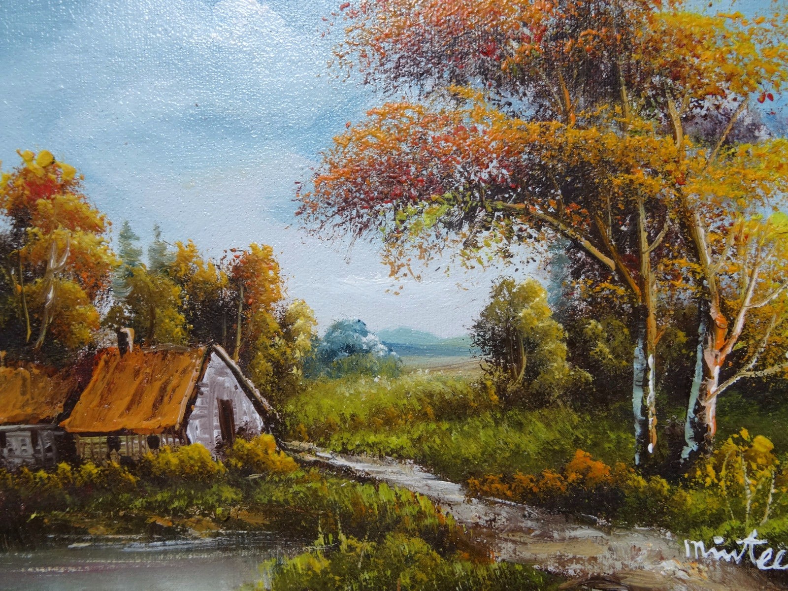 Original English Autumn Country Landscape Oil on Canvas Painting