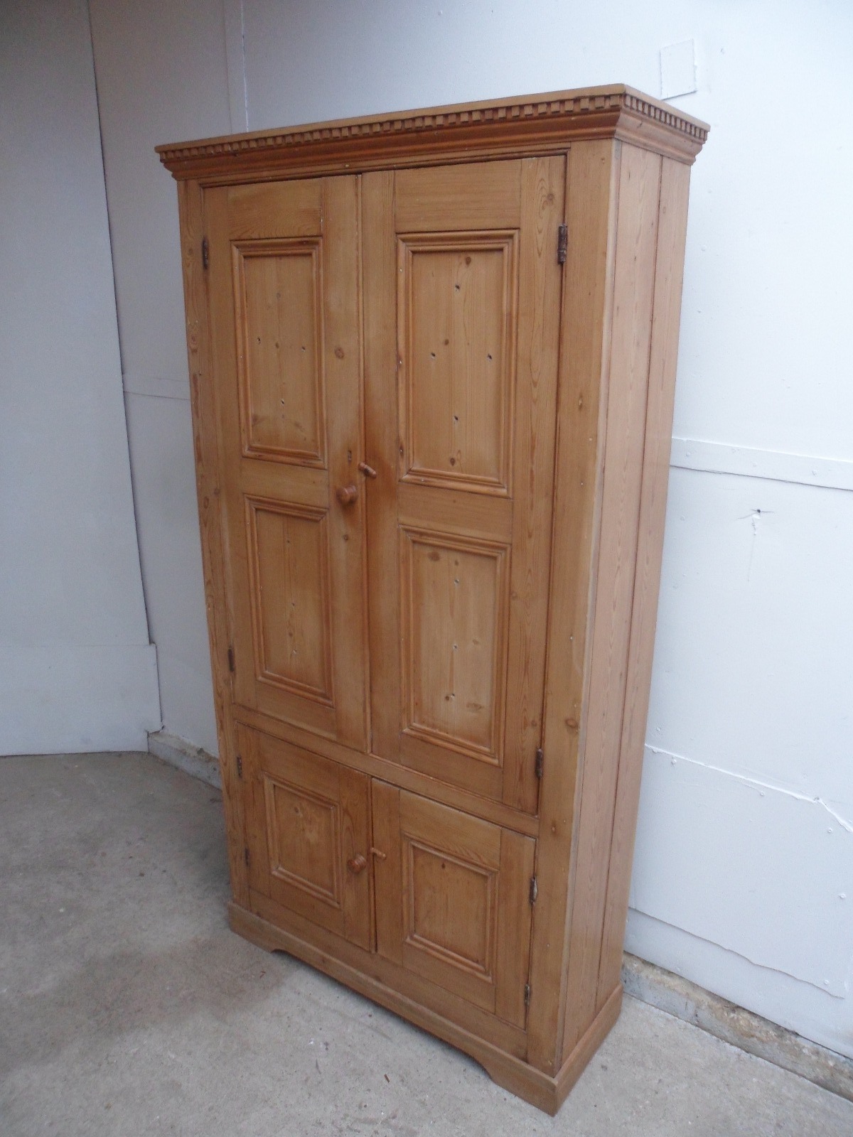 Original English Victorian Antique Pine Waxed Shallow Kitchen Cupboard