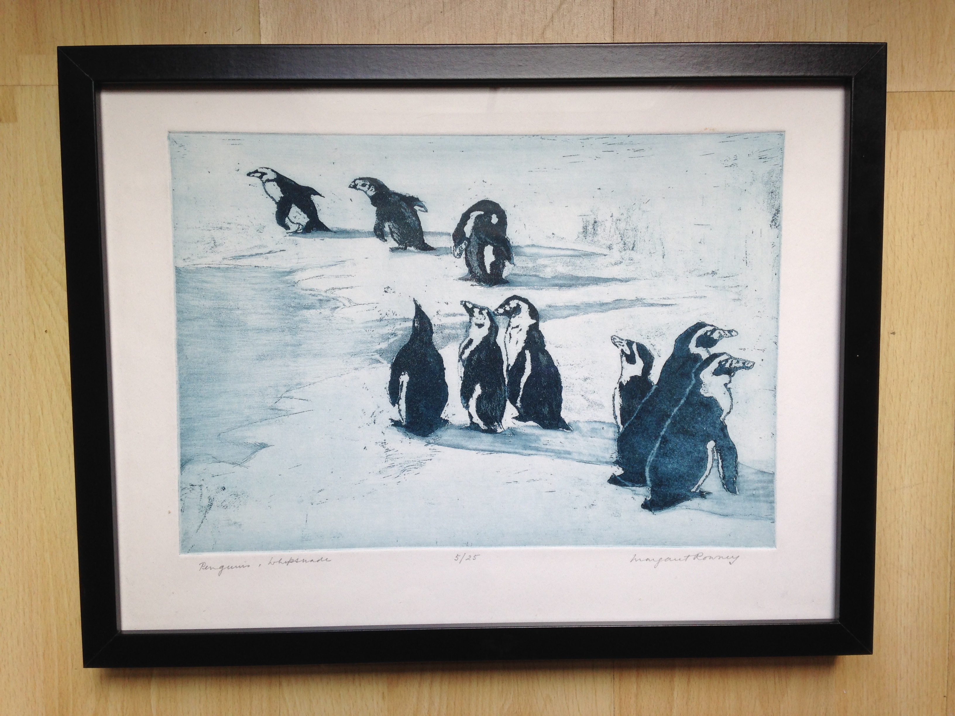 Original Etching Signed by Margaret Edith Rowney (1908-1998)' Penguins, Whipsnade' (Free Shipping To Uk)