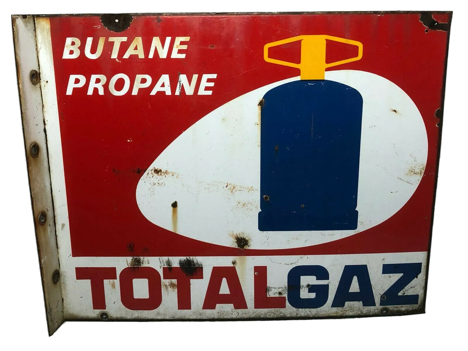Original French 1970s Butane Propane Totalgaz Enamel Advertising Double Sided Sign
