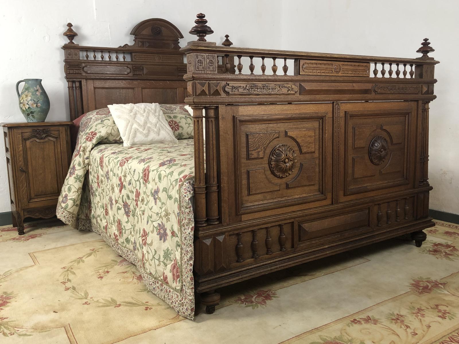 Original French Carved Solid Oak Bed Frame Breton Bed Double