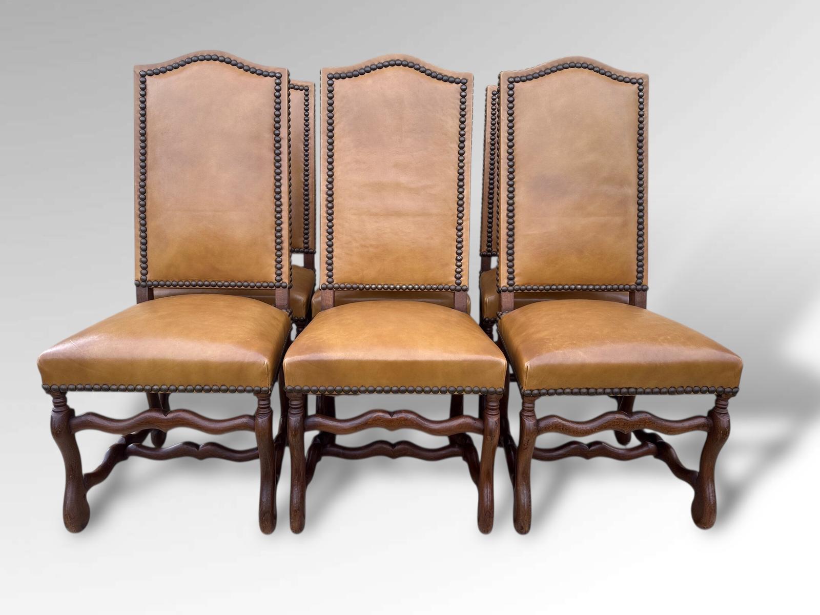 French Os de Mouton Leather Dining Chairs In Oak – Set of 6 (12 Available)