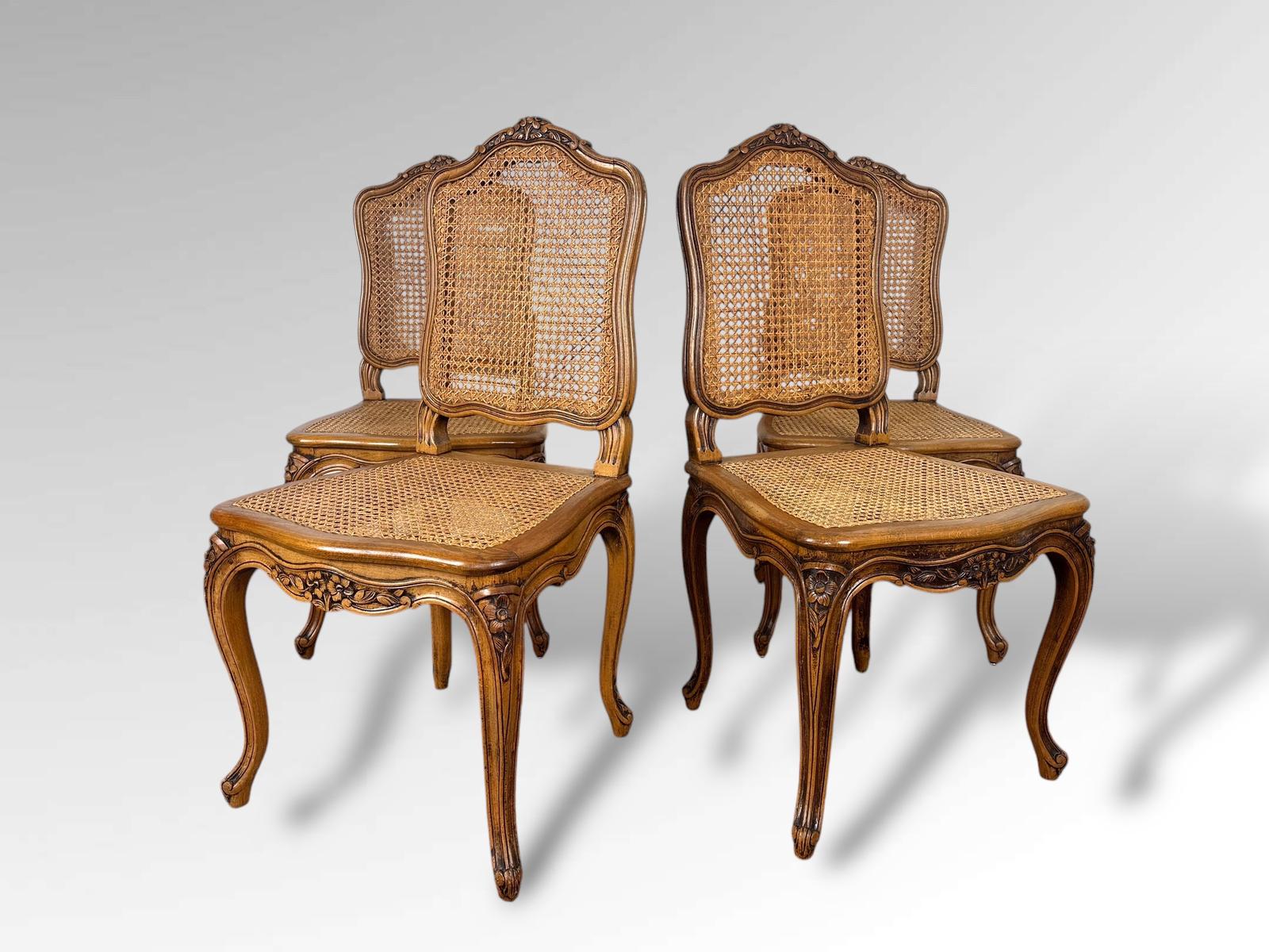 Original French Set Of Four Louis Style Cane Dining Chairs