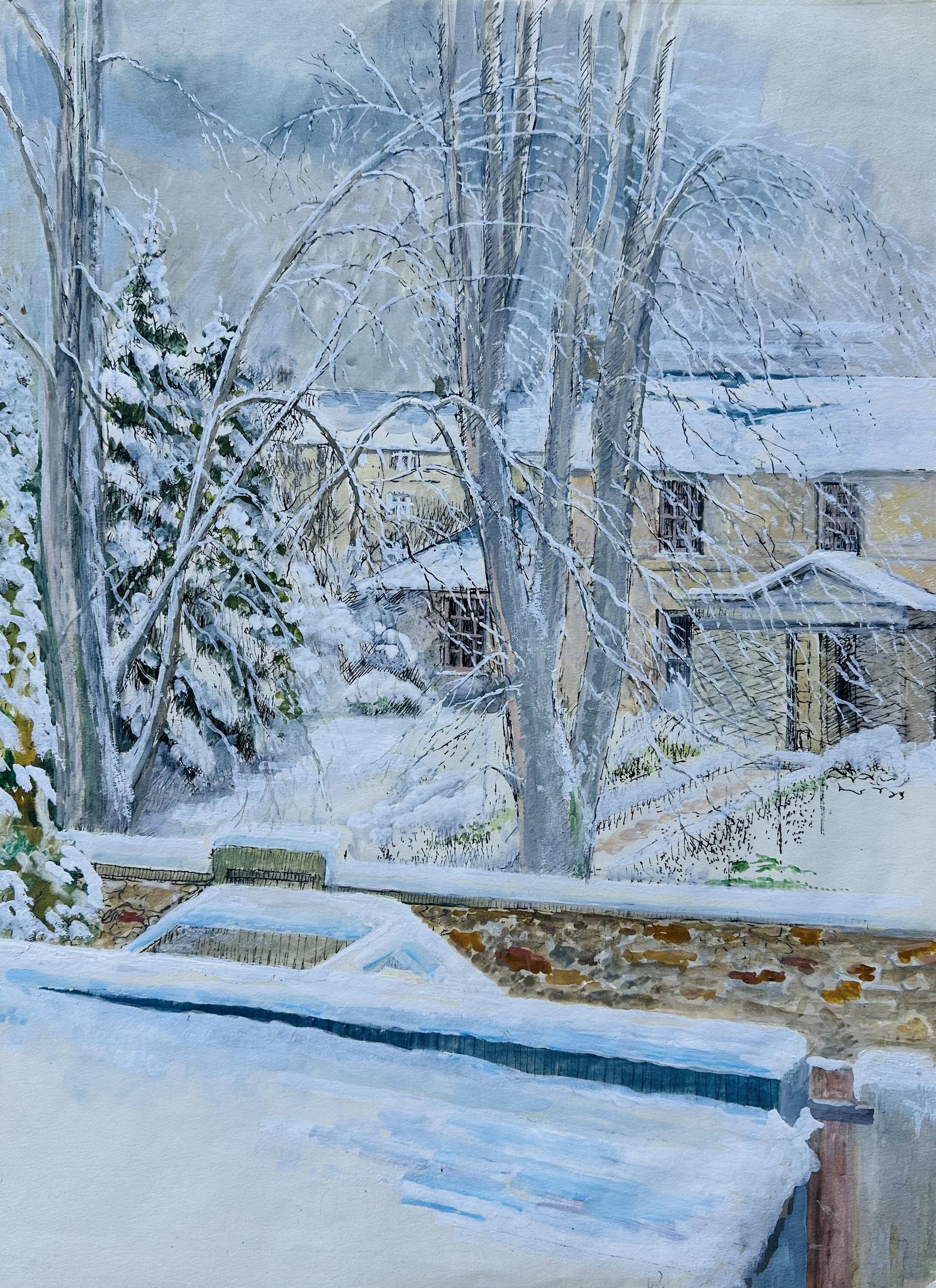 Original Gouache and Watercolour 'back Garden Canaan Lane Edinburgh', By Helmut Petzsch.1920-2008. Signed Verso