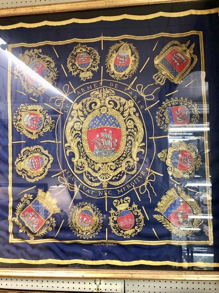 Original Hermes Silk Scarf “Les Armes De Paris” by Hugo Grygkar, 1954, Displayed in Frame