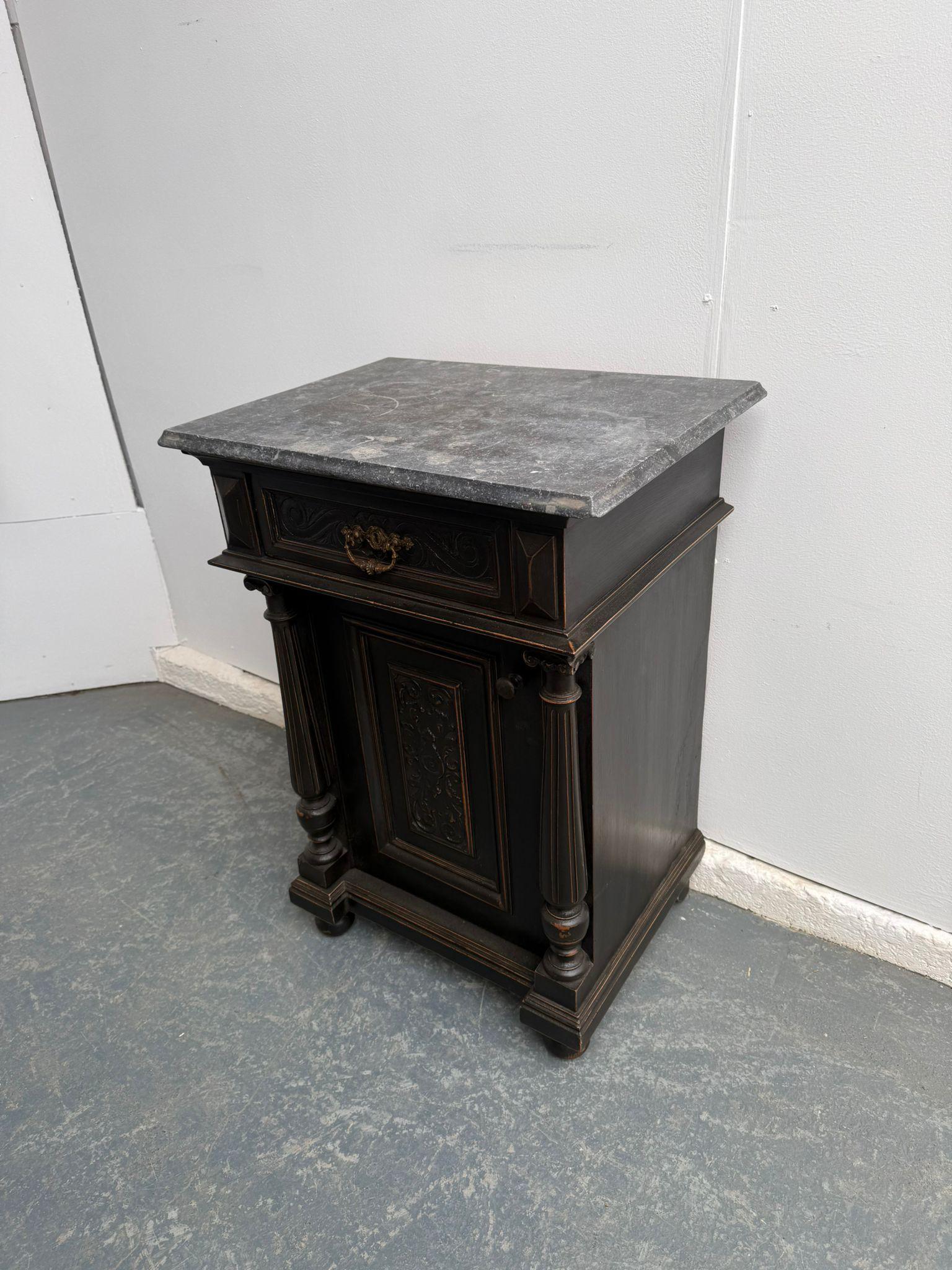 Beautifully Painted Black Pine & Oak Carved Victorian Bedside Cabinet