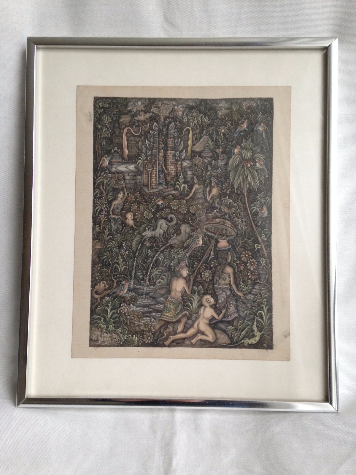 Original Ink & Watercolor Painting Bali, Batuan Traditional Ubud Painting Signed Collectible