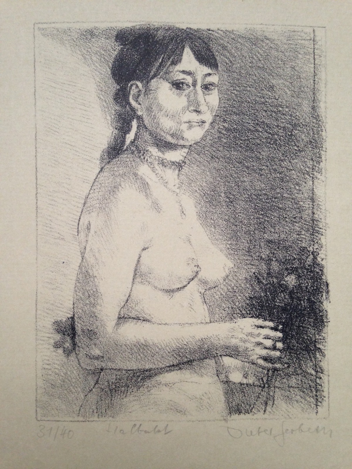 Original Lithograph Limited Edition Portrait: the Nude Girl with Flowers, Signed c.1980
