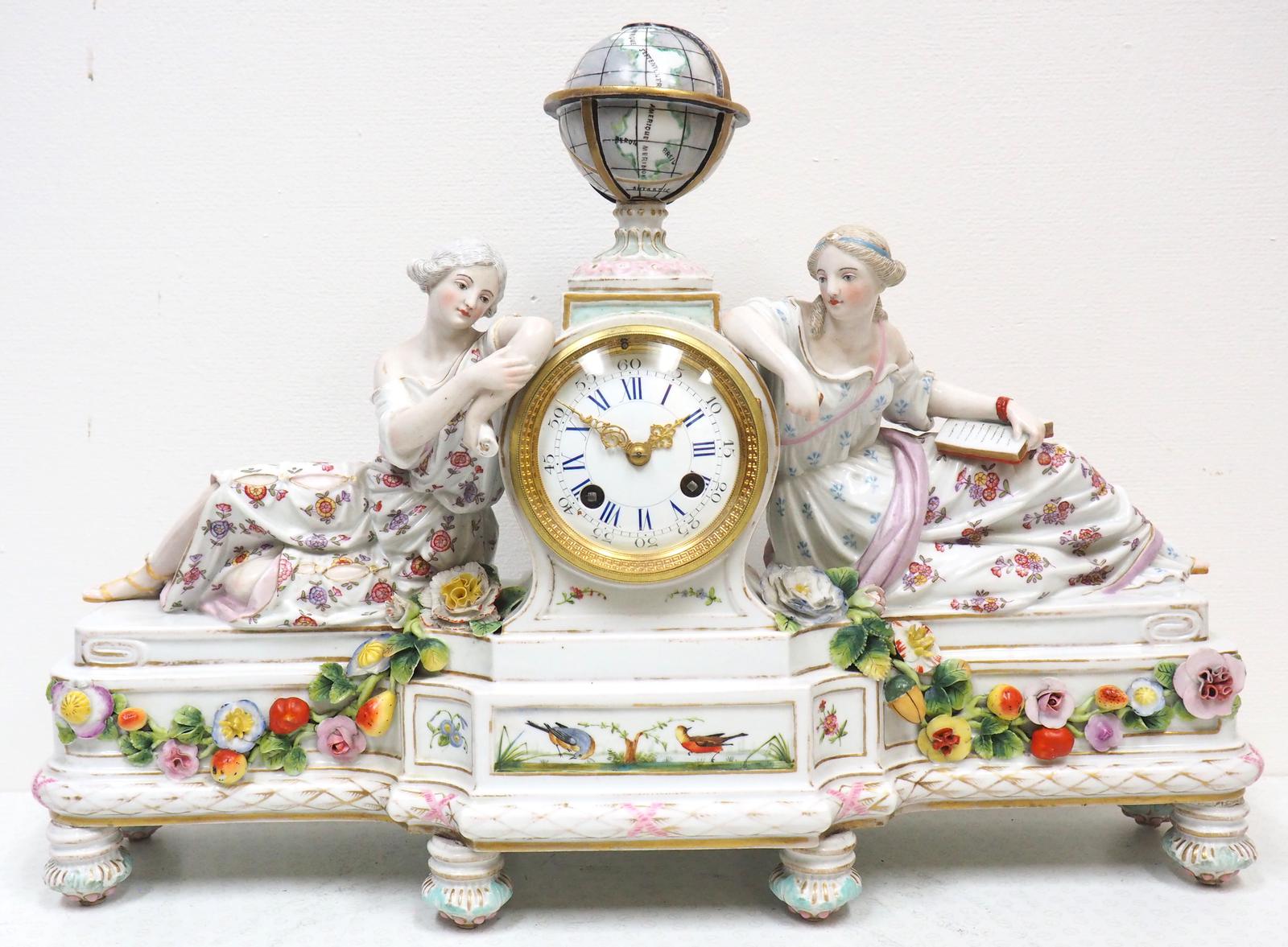 Original Meissen Porcelain Mantel Clock Figural Striking 8-Day Mantle Clock c.1860