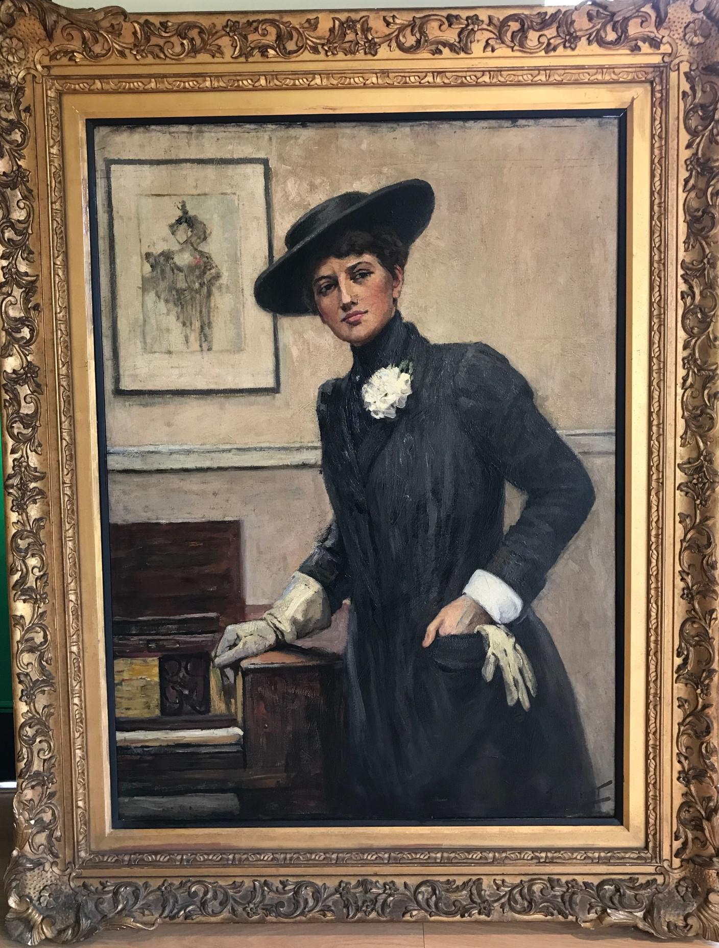 Original oil on canvas 'Mrs Enthoven' by Ethel Wright 1866-1939. Exhibited at the Royal Academy 1911. No. 498