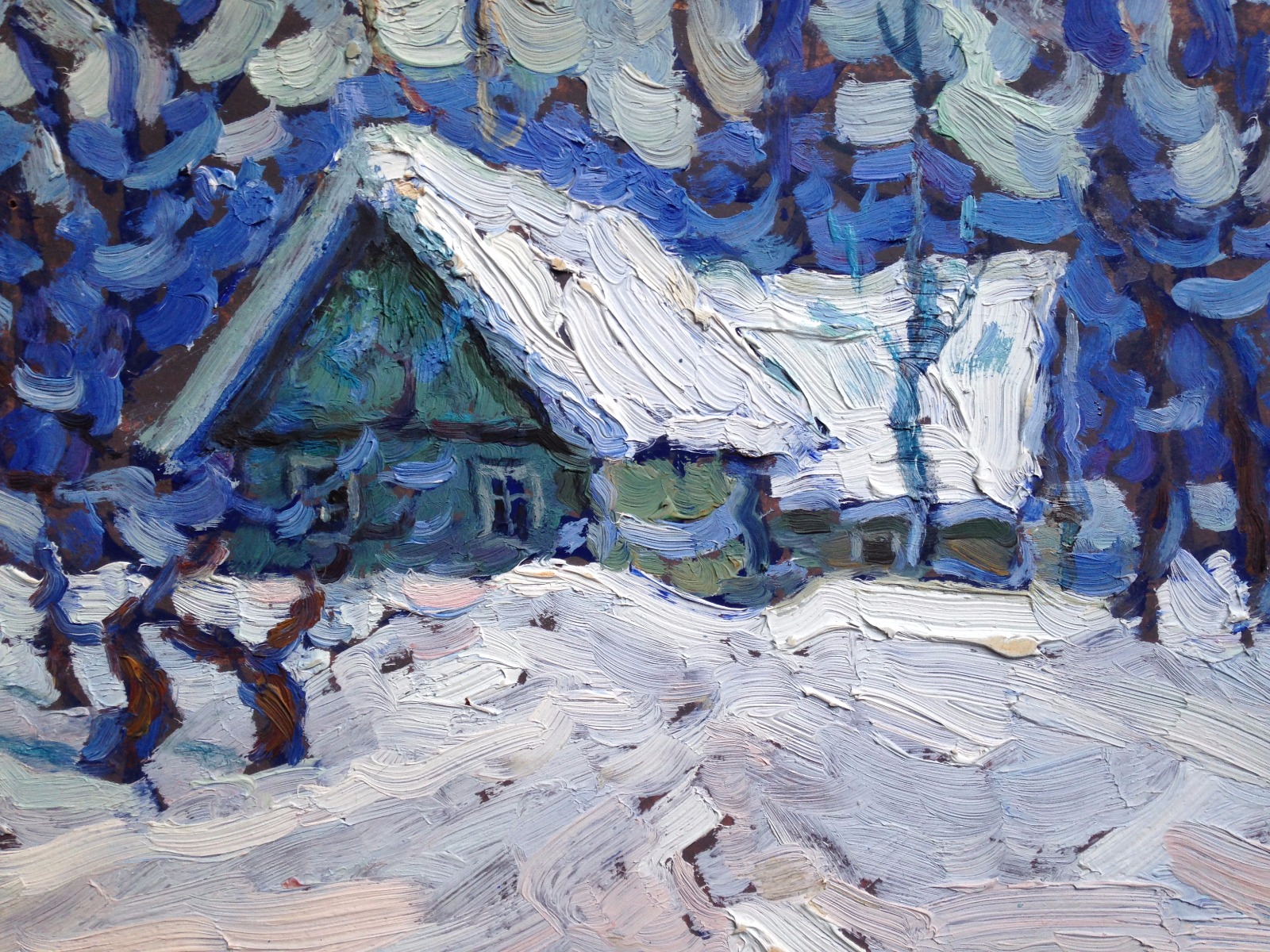 Original Oil Painting Landscape 'Lodge' Signed by Artist V. Gavreeshev 1975