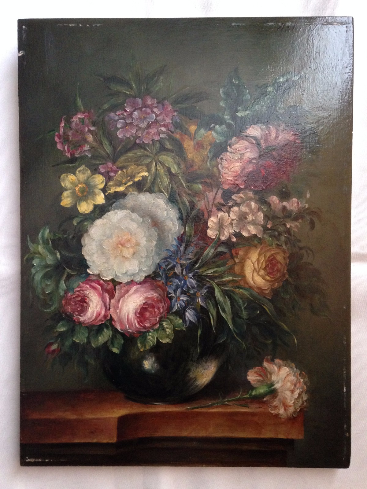 Original Oil Painting, Late 19th Century on the Wooden Panel Still Life Flowers Signed (Free Shipping to Mainland Uk)