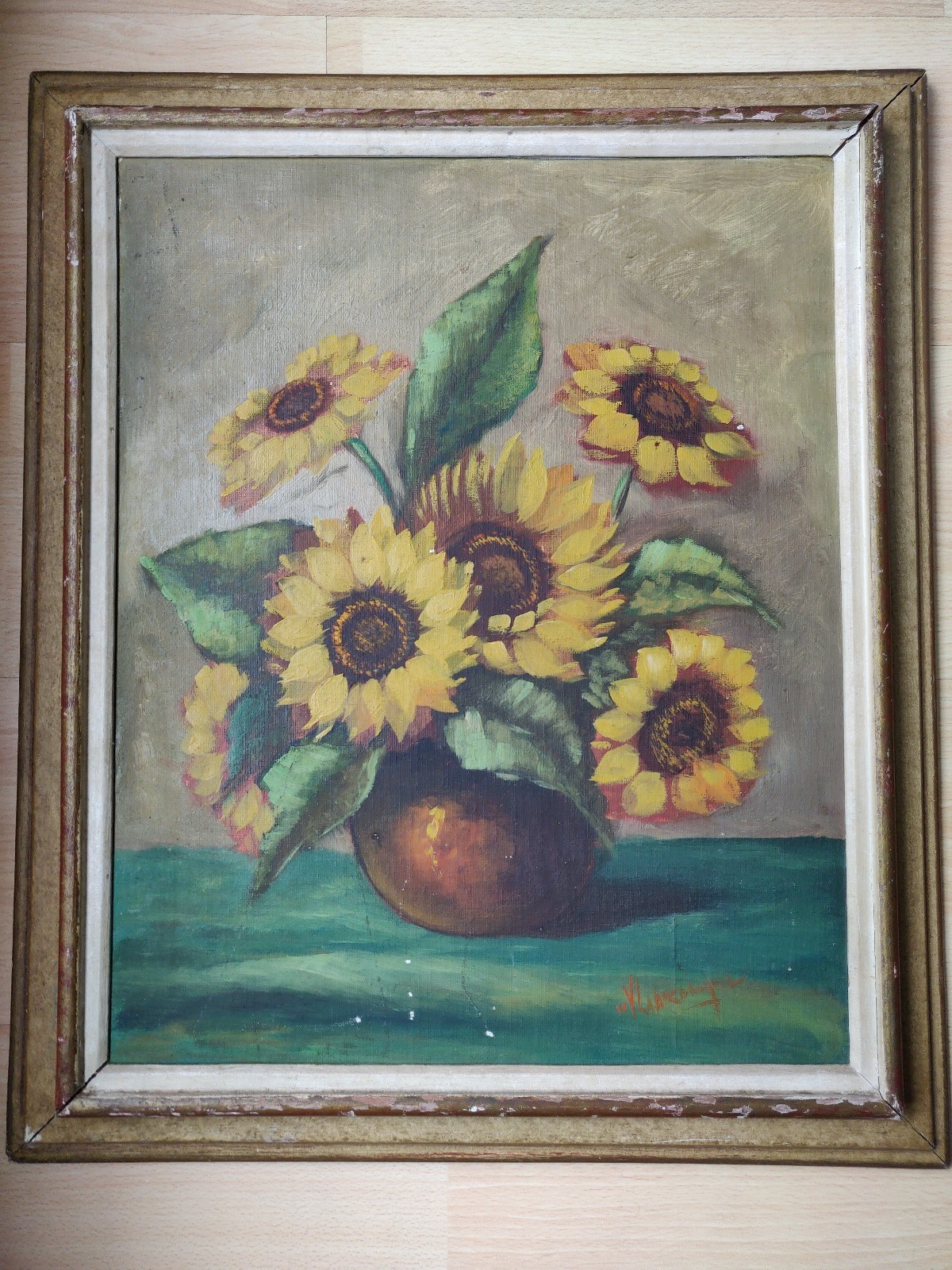 Original Oil Painting 'Sunflowers' Signed by Artist circa 1950