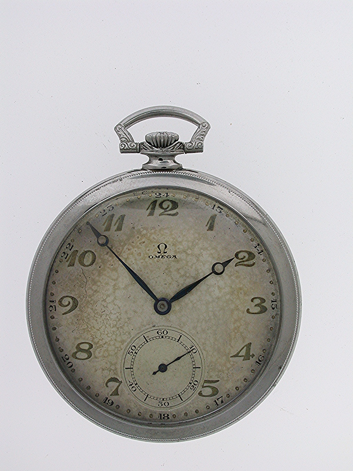 Original Omega Steel Open Face Gent’s Pocket Watch Swiss 1930