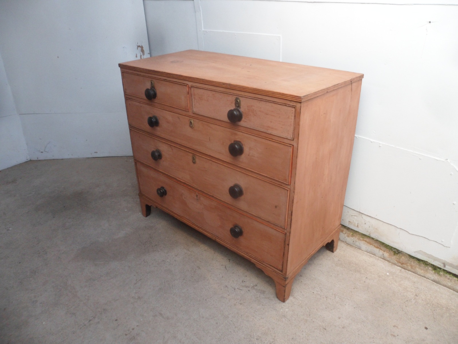 Original Painted Georgian 5 Drawer Antique Pine Large Chest of Drawers