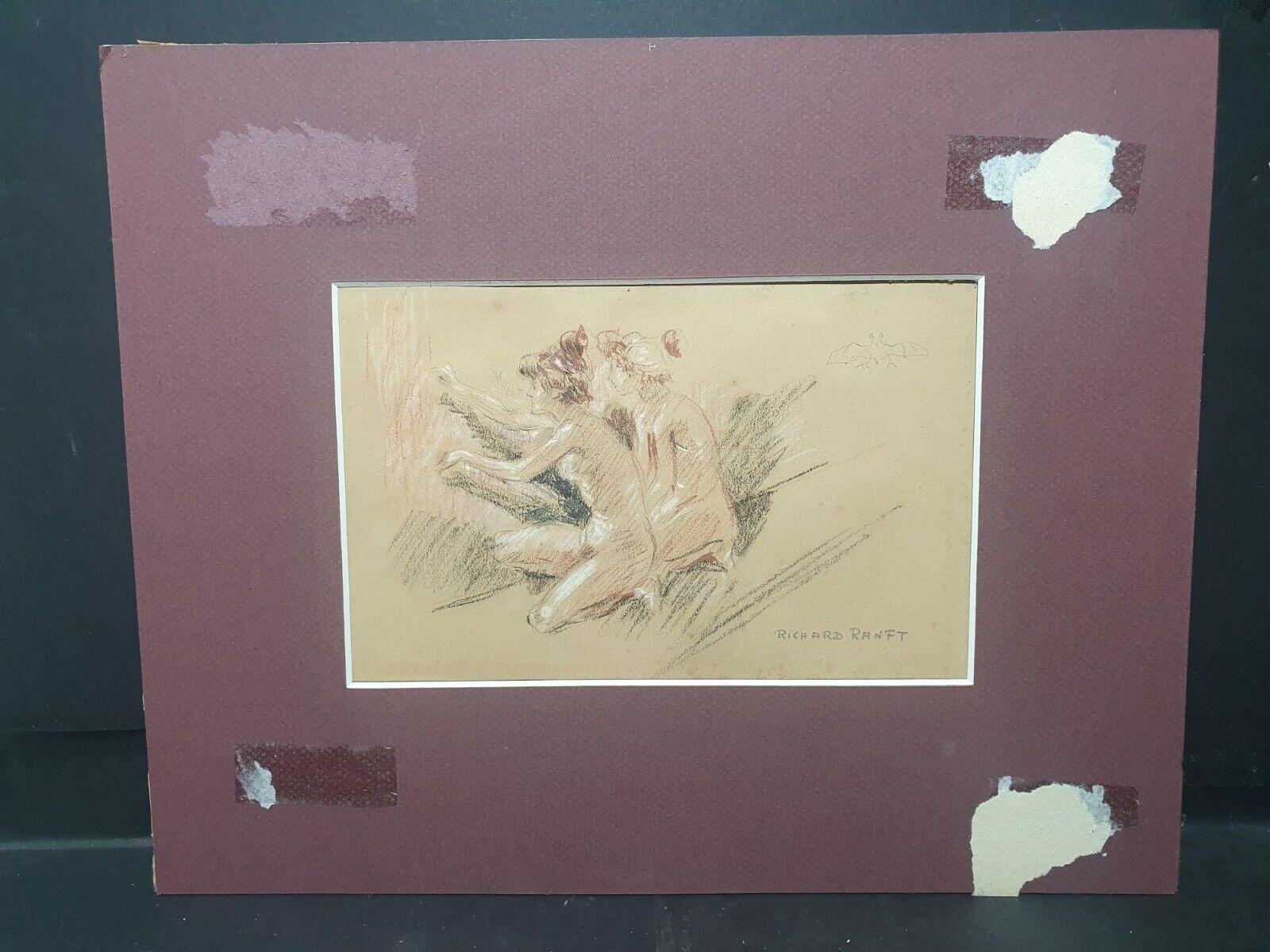 Original Pastel and Chalk Richard Ranft Female Nudes 1890 Switzerland Signed