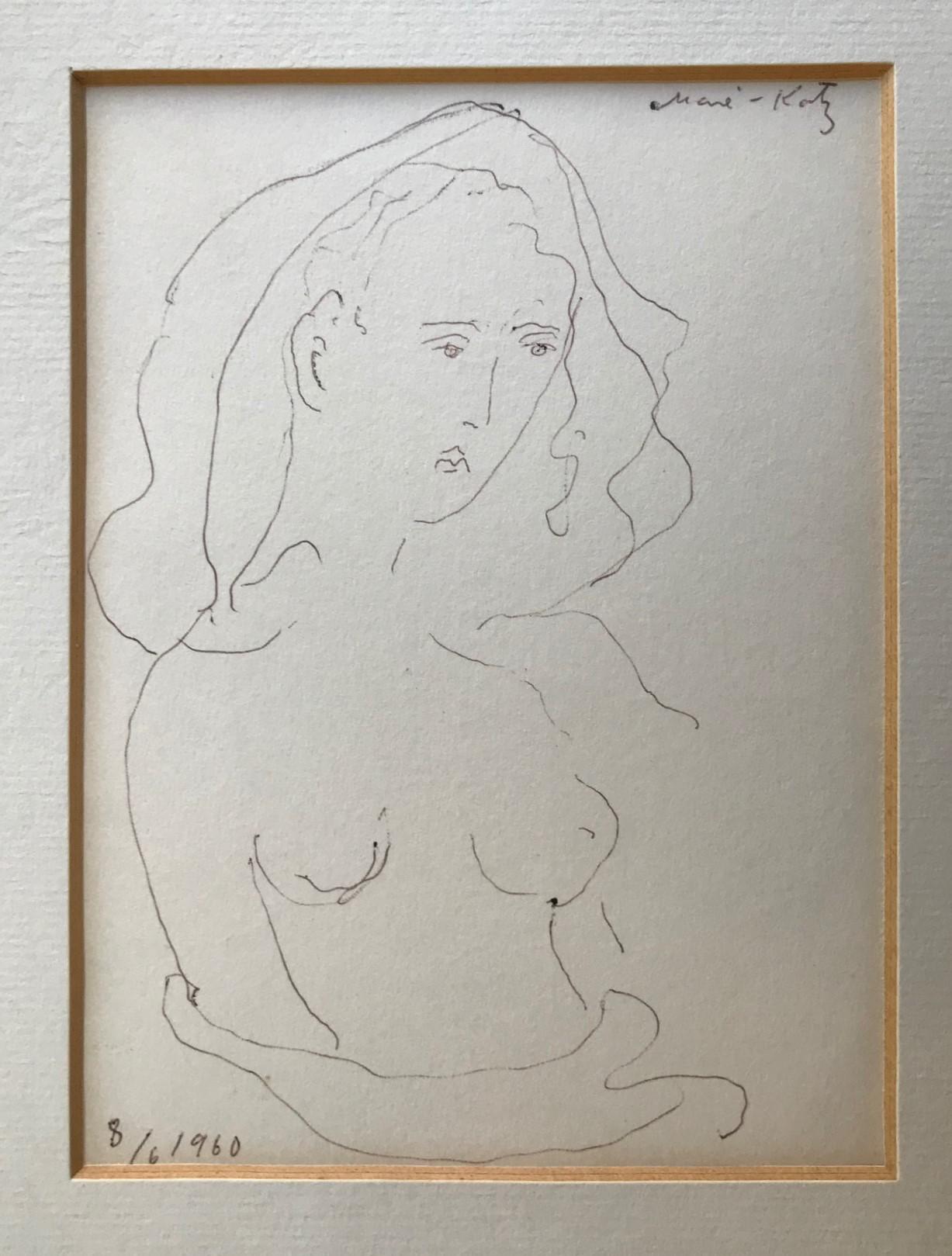Original pen and ink drawing by Mane Katz (1884-1962). Signed, inscribed and dated 1962
