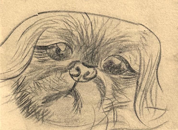 Original Pencil Drawing 'A Dog Portrait' by Rodrigo Moyniham RA - Provenance; Elinor Bellingham Smith c.1950