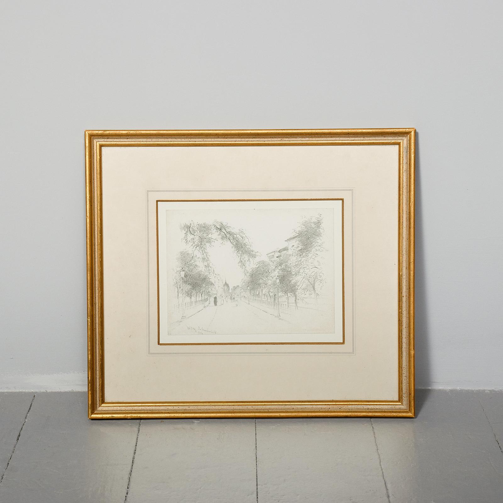 Original Pencil Drawing by William Darling McKay “the Meadow Walk, Edinburgh”
