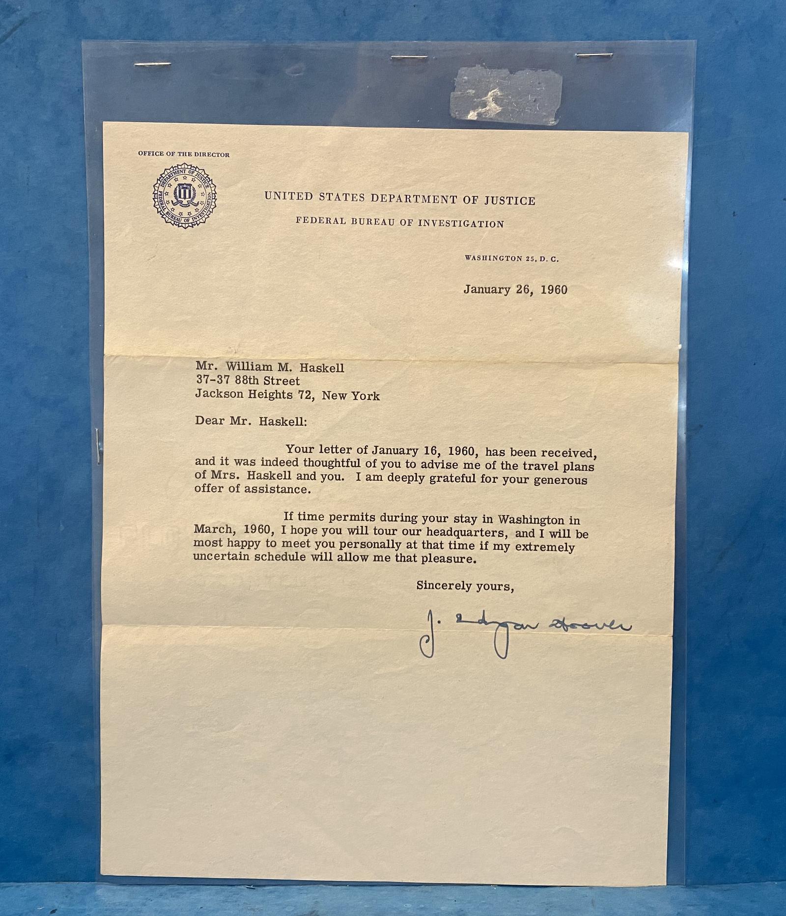 Original Signed Letter From J.Edgar Hoover