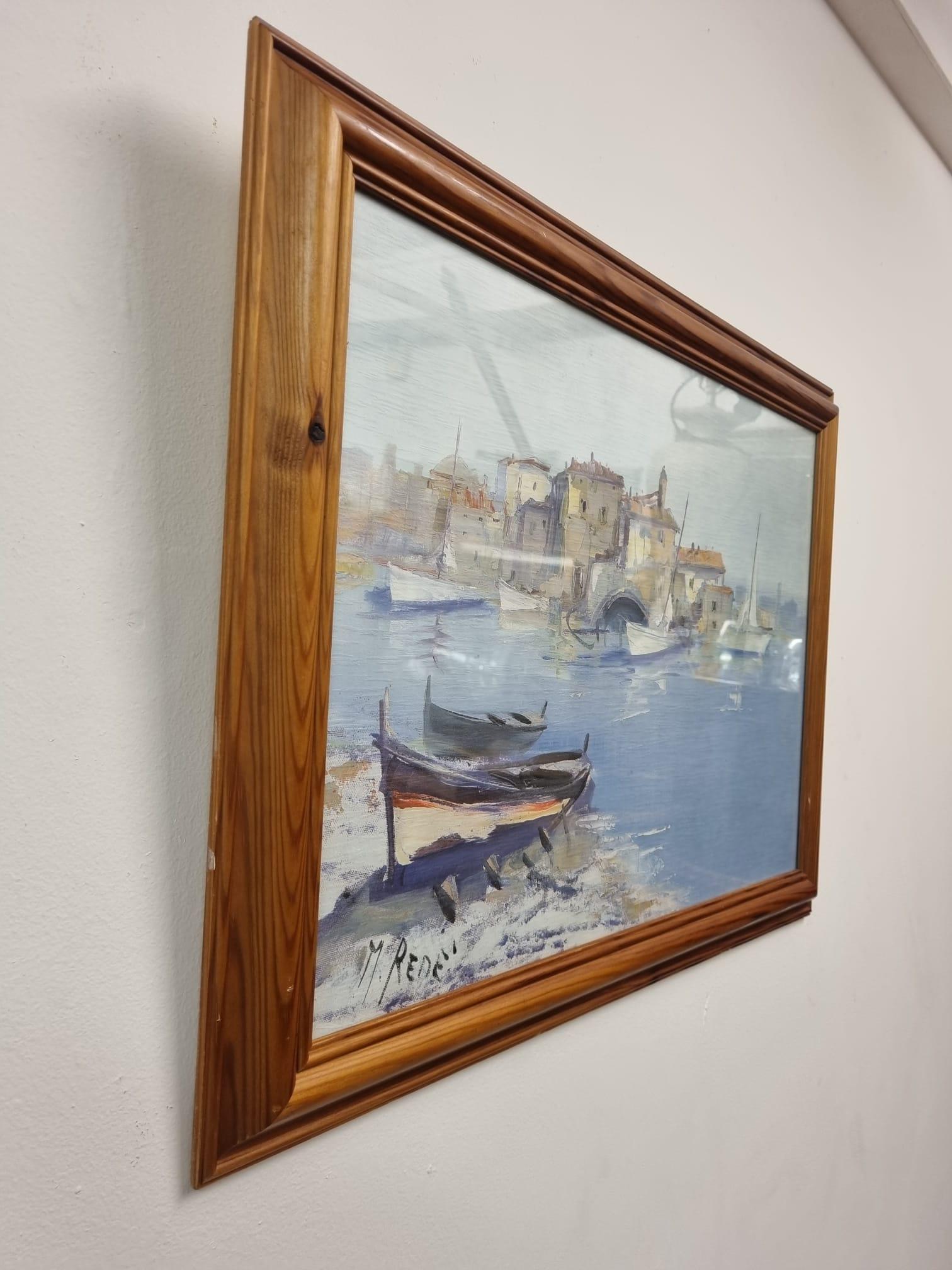 MebleinUK has clarified that the Original Signed Oil Painting on Canvas / Coastal Harbour Scene/ (LA568083) is genuinely of the period declared with the date/period of manufacture being 1960