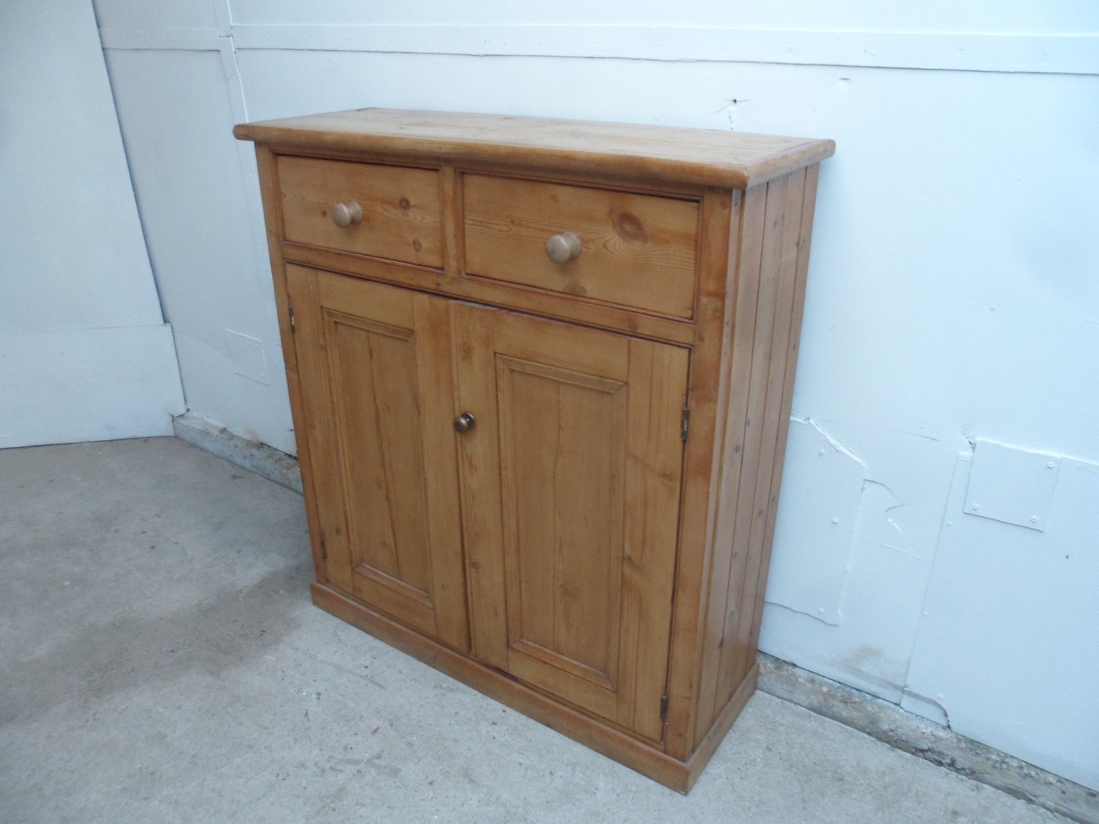 Original Victorian Antique / Old Pine Waxed 2 Door 2 Drawer Cupboard / Dresser Base