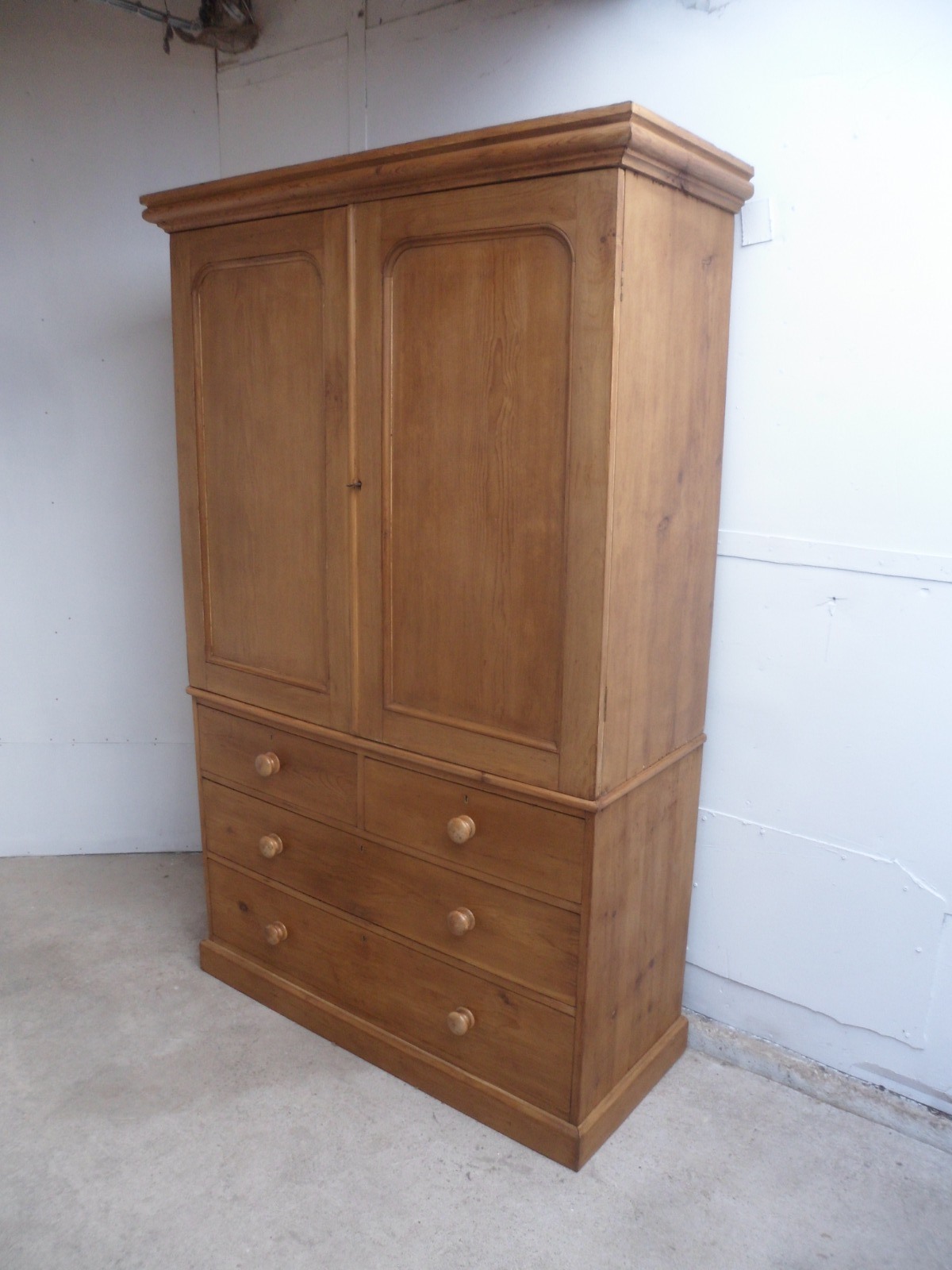 Original Victorian Antique Pine 2 Piece Linen Press / House Keep Cupboard