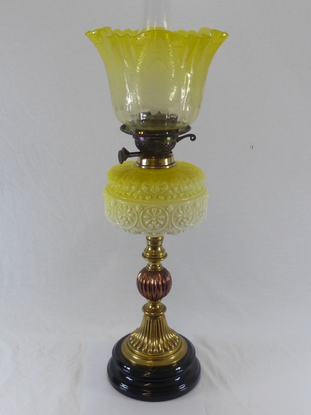 Original Victorian Duplex Oil Lamp with Fancy Etched Shade