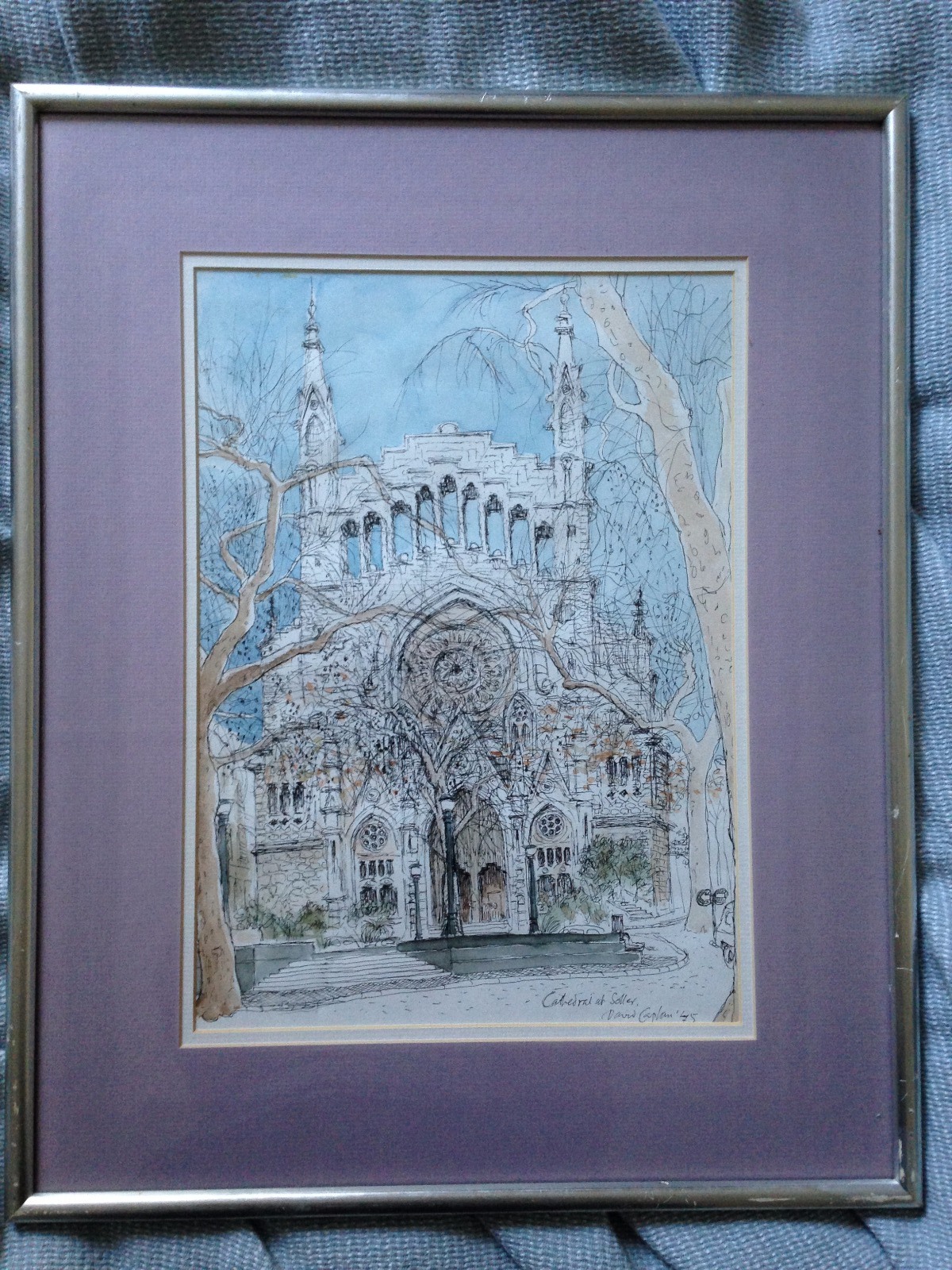 Original Watercolor & Ink Painting Signed, Dated & Titled by David Caplan 'Cathedral At Soller' 1975