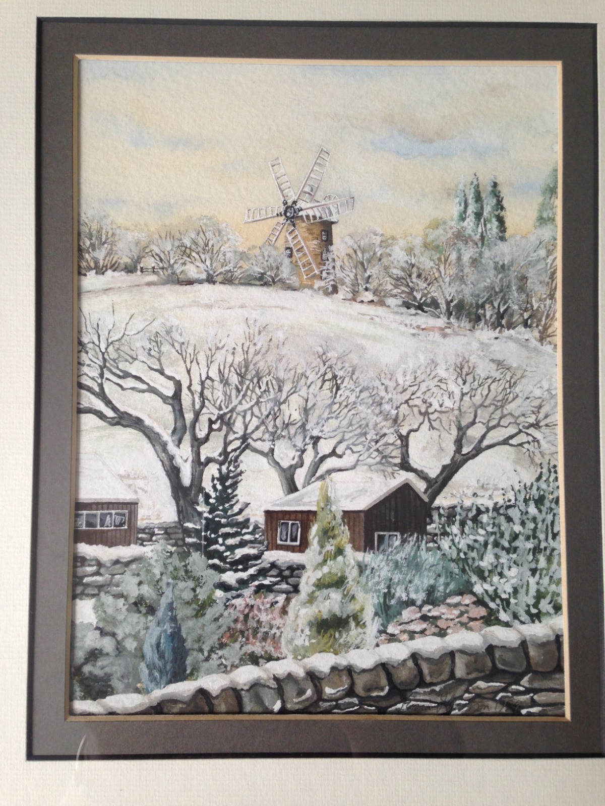 Original Watercolor Landscape Painting 'Heage Windmill in Winter, Derbyshire' Signed