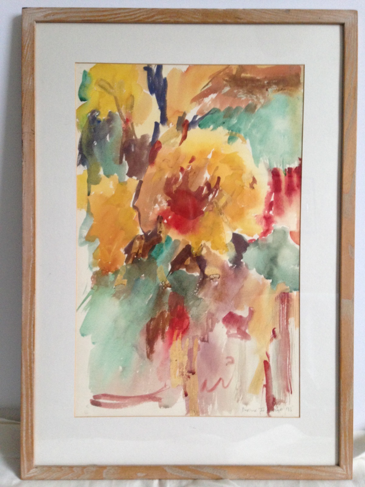 Original Watercolor Painting 'Flowers' Signed by Artist Daphne Jo Grant, 1993