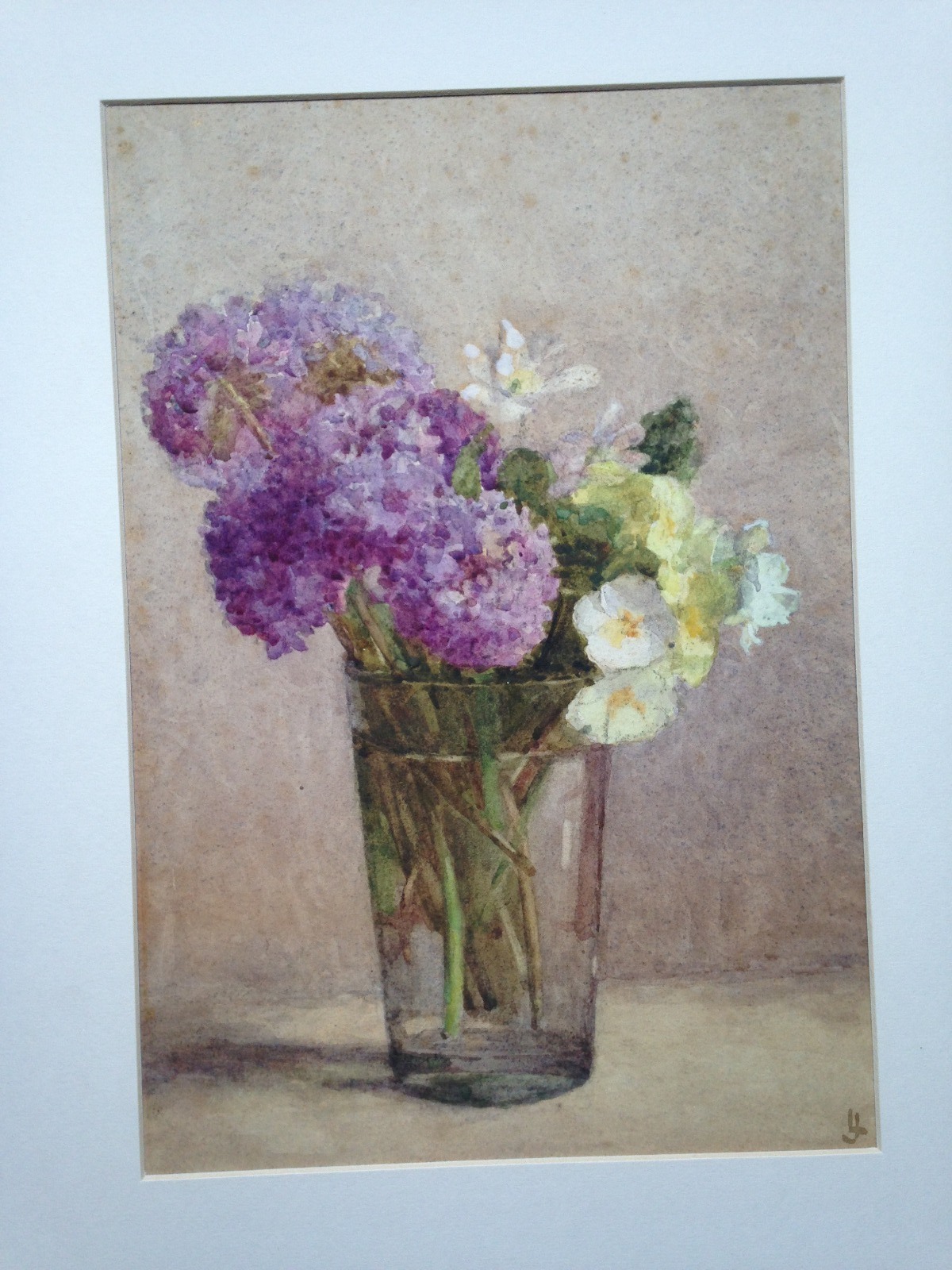 Original Watercolor Painting Still Life with Flowers Signed Jl & Dated 1910