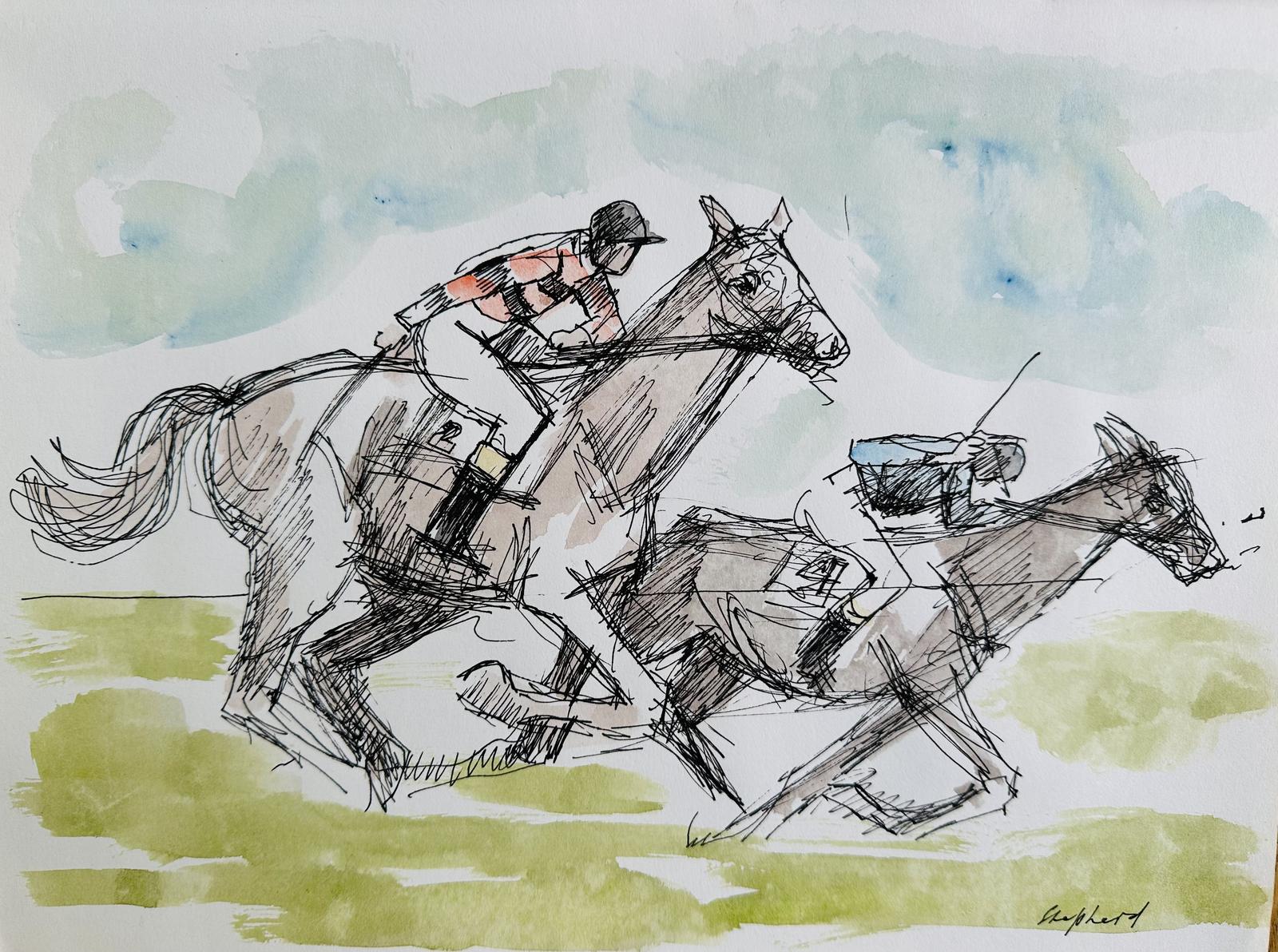 Original Watercolour 'At the Races' by Toby Horne Shepherd (1909-1993) Signed c.1970