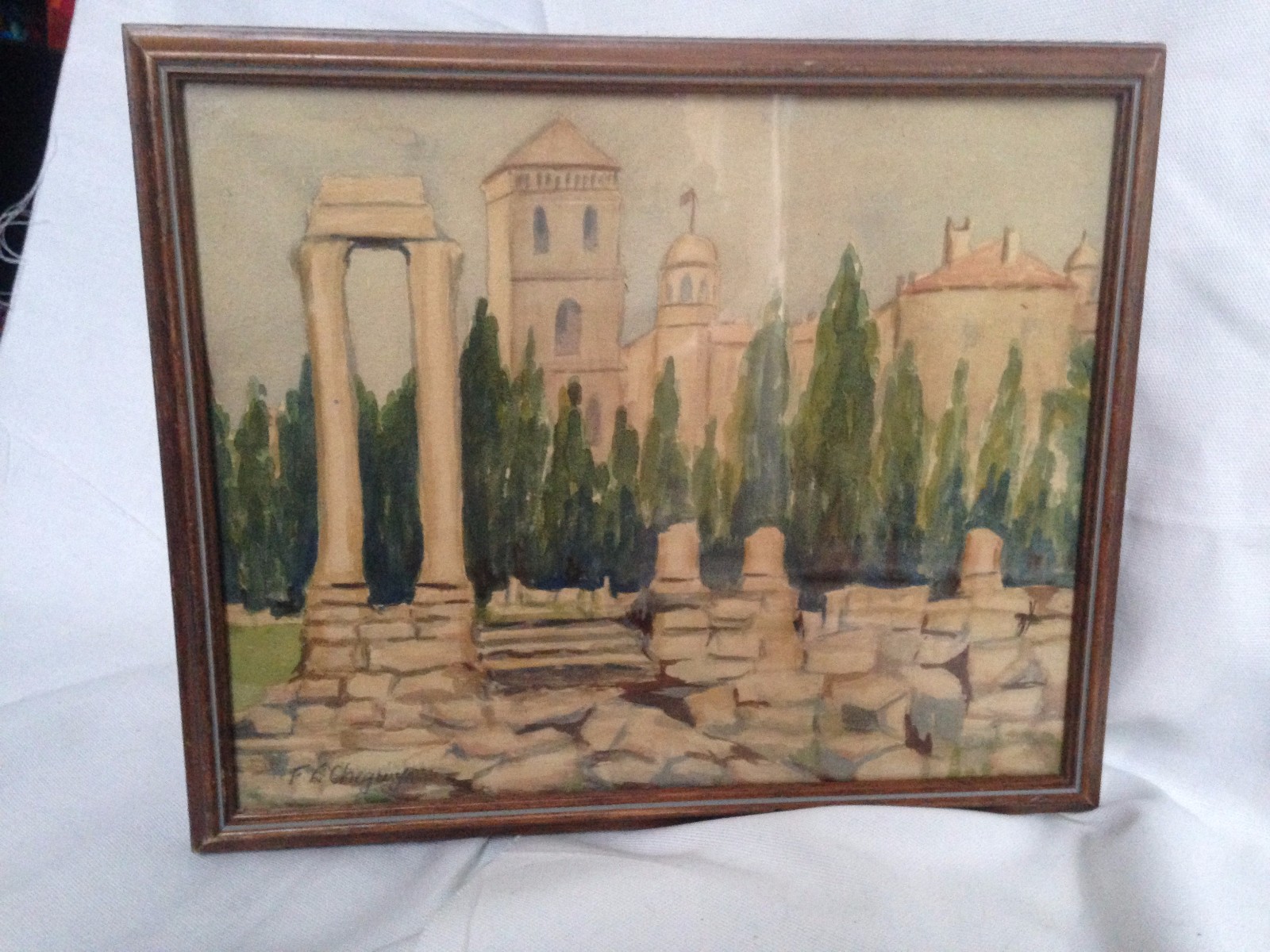 Original Watercolour French Landscape ARLES by Irish Artist F.L.Chegwyn 1962 (Free Shipping to UK)