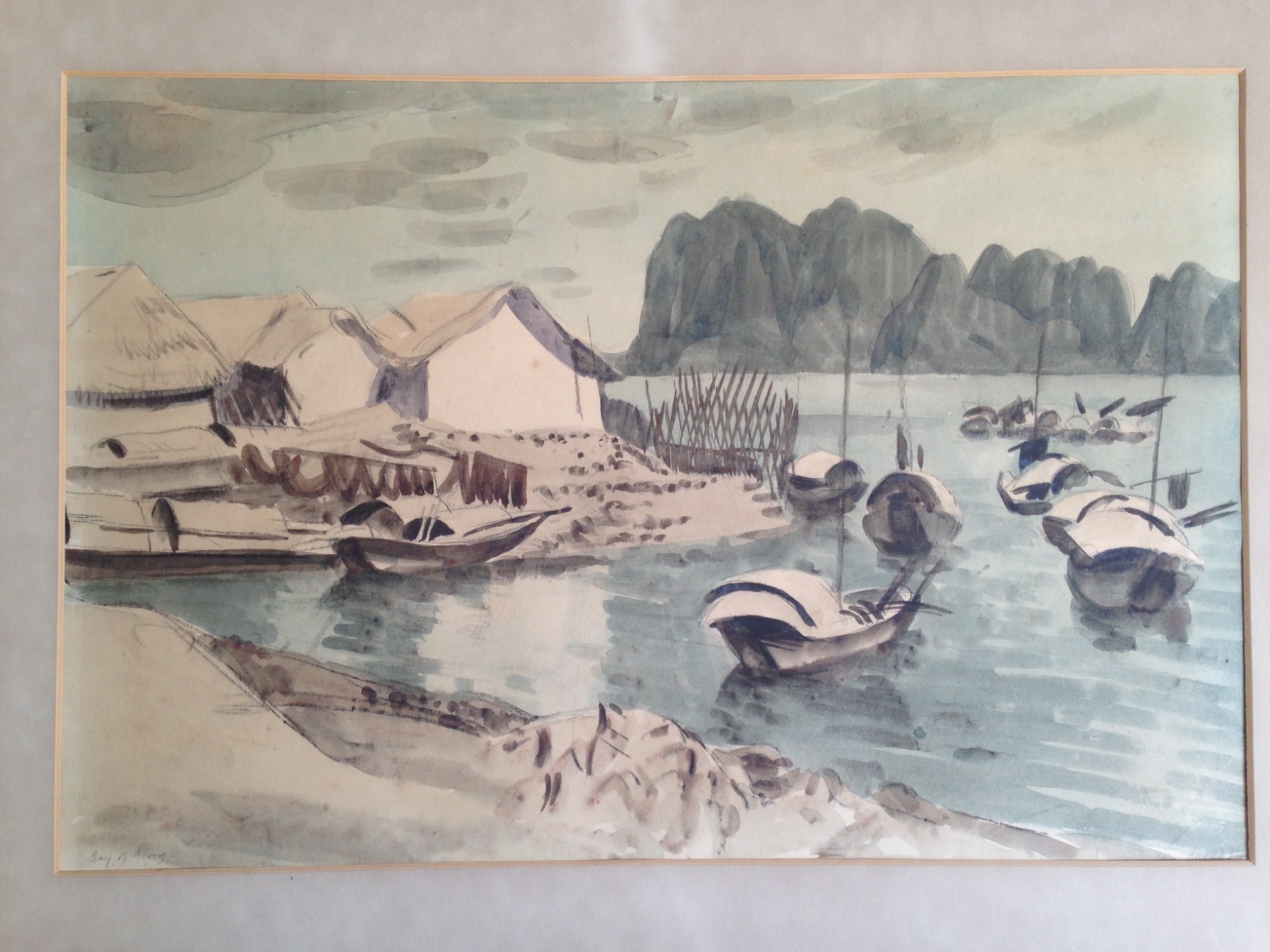 Original Watercolour Landscape 'Bay of Halong, Vietnam' by Pat Aked, 1937