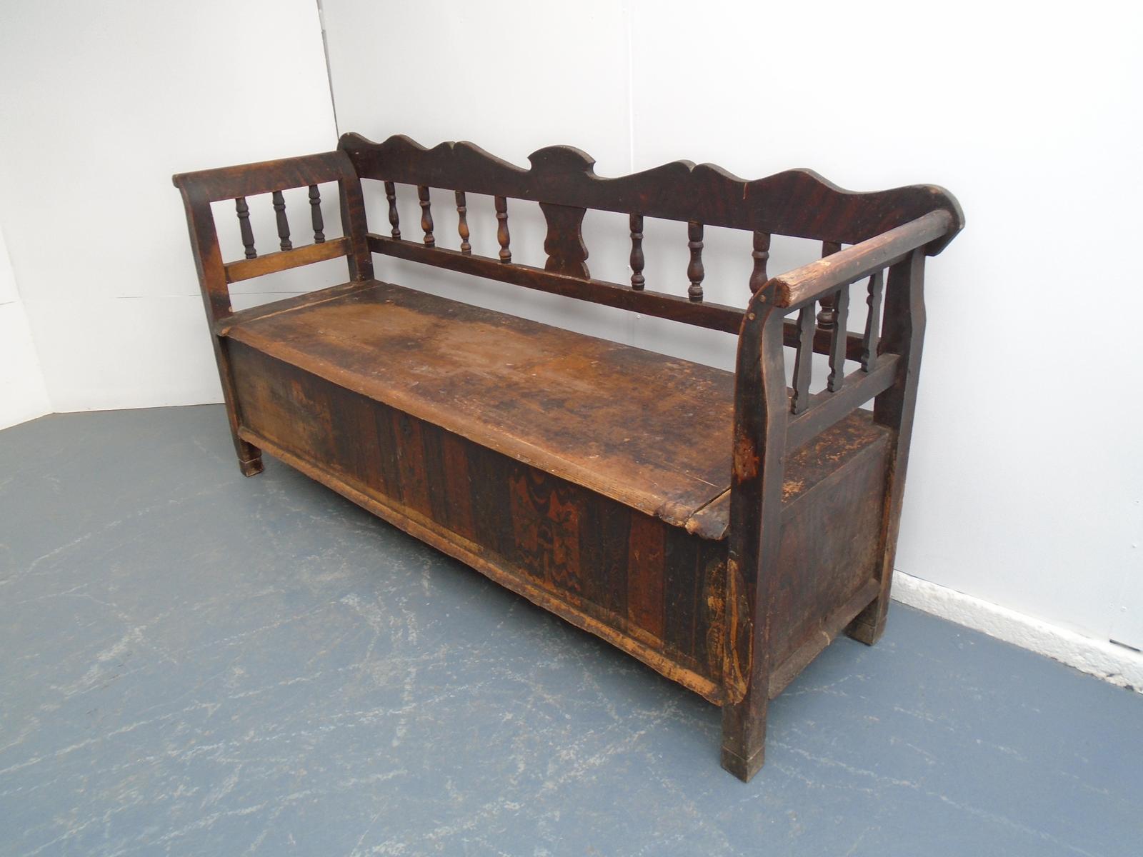 Originally Painted Brown / Orange Victorian 3 Seater Box Settle / Bench