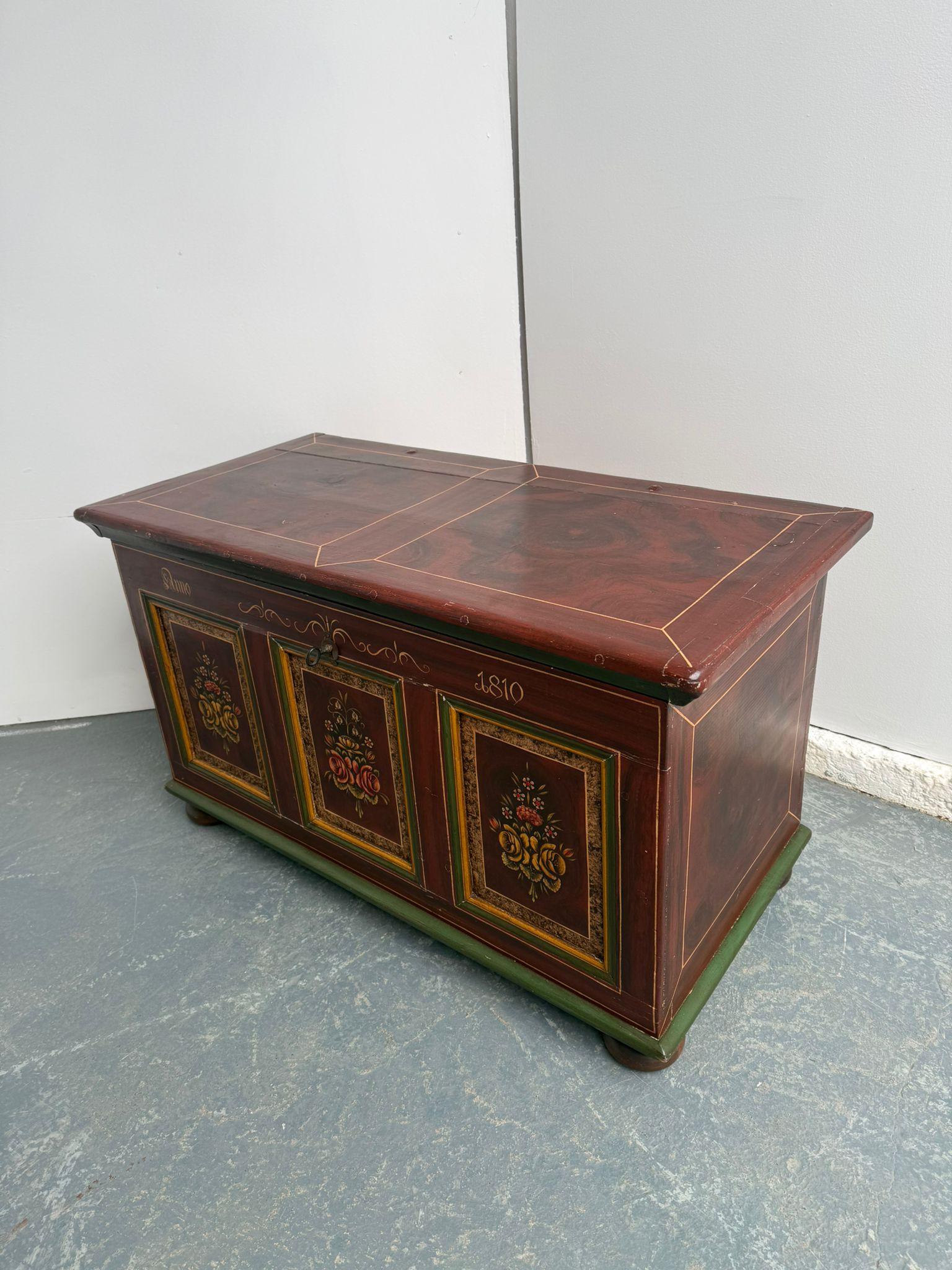 Originally Painted Cute Small Hungarian Coffer Box / Coffee Table / TV Stand