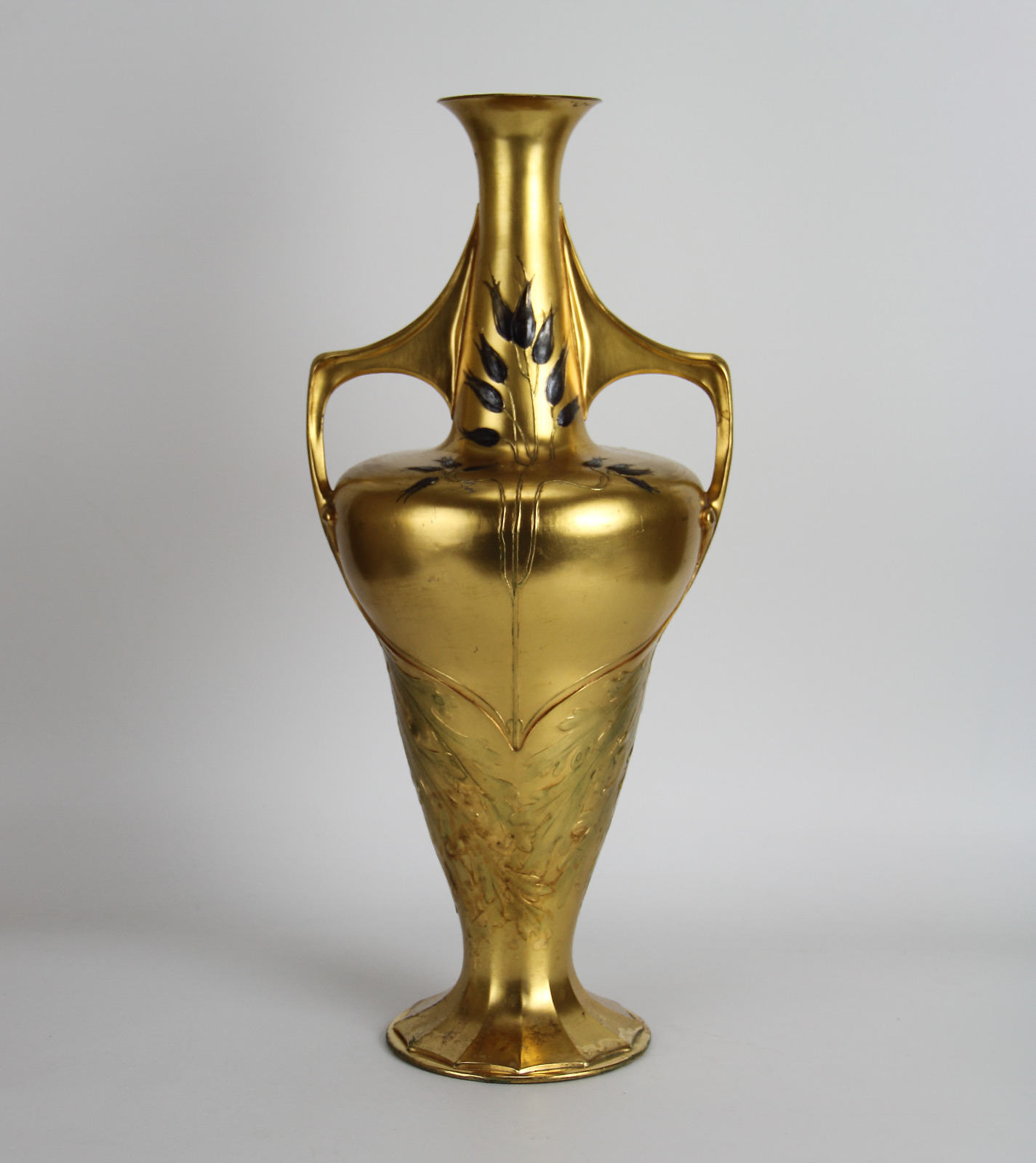 Orivit Art Nouveau Gilded Pewter Vase with Twin Handles c.1900