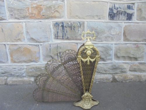 Ornate Brass Folding Peacock Design Fire Screen Guard c.1920
