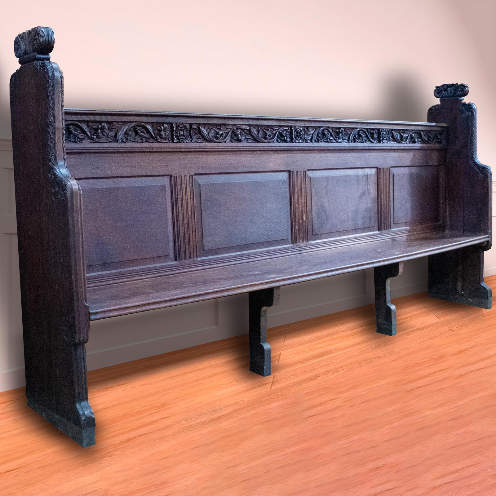 Ornate Carved Oak Pew