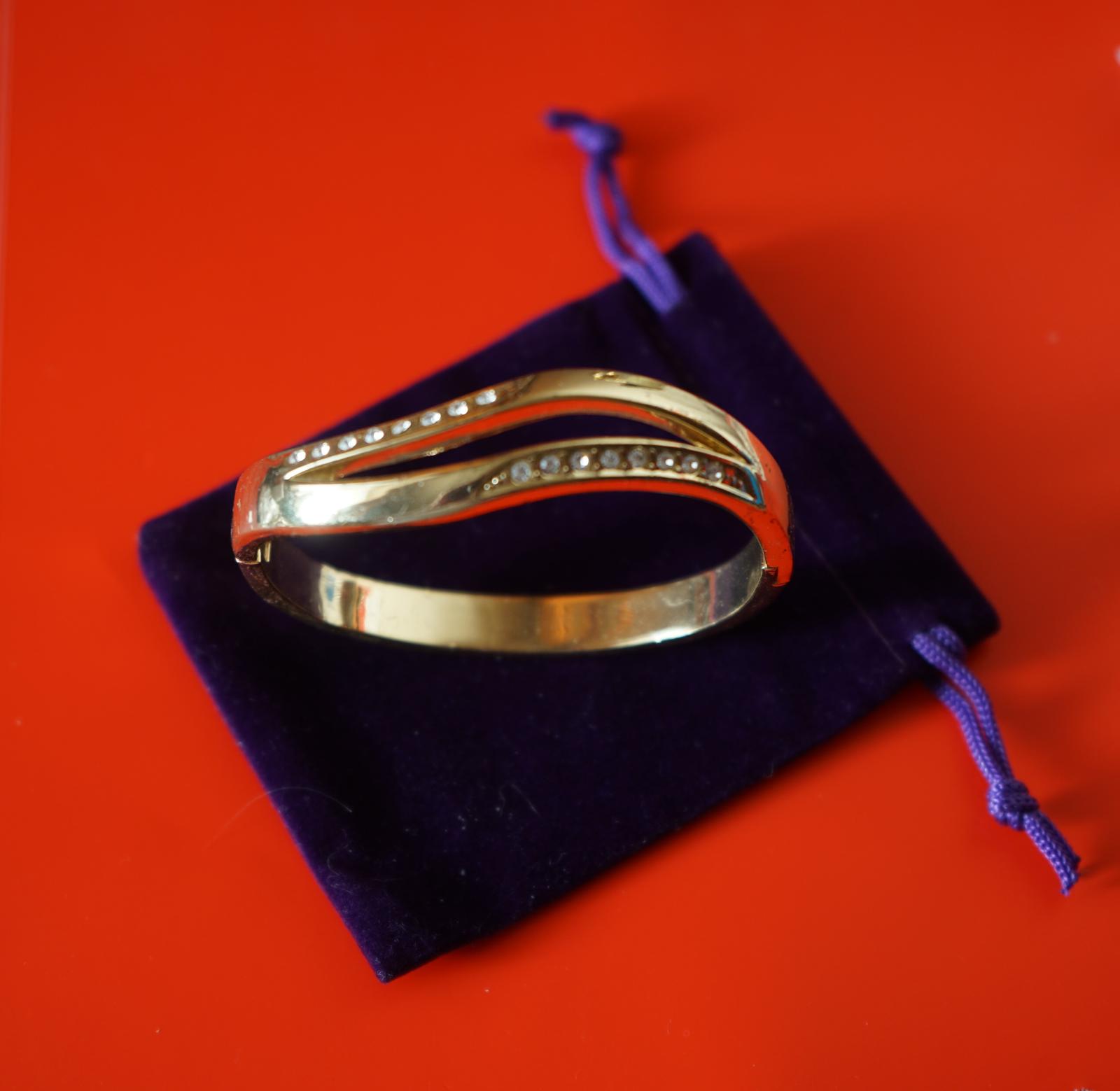 Ornate Gold Plated Rhinestone Bracelet with Pouch
