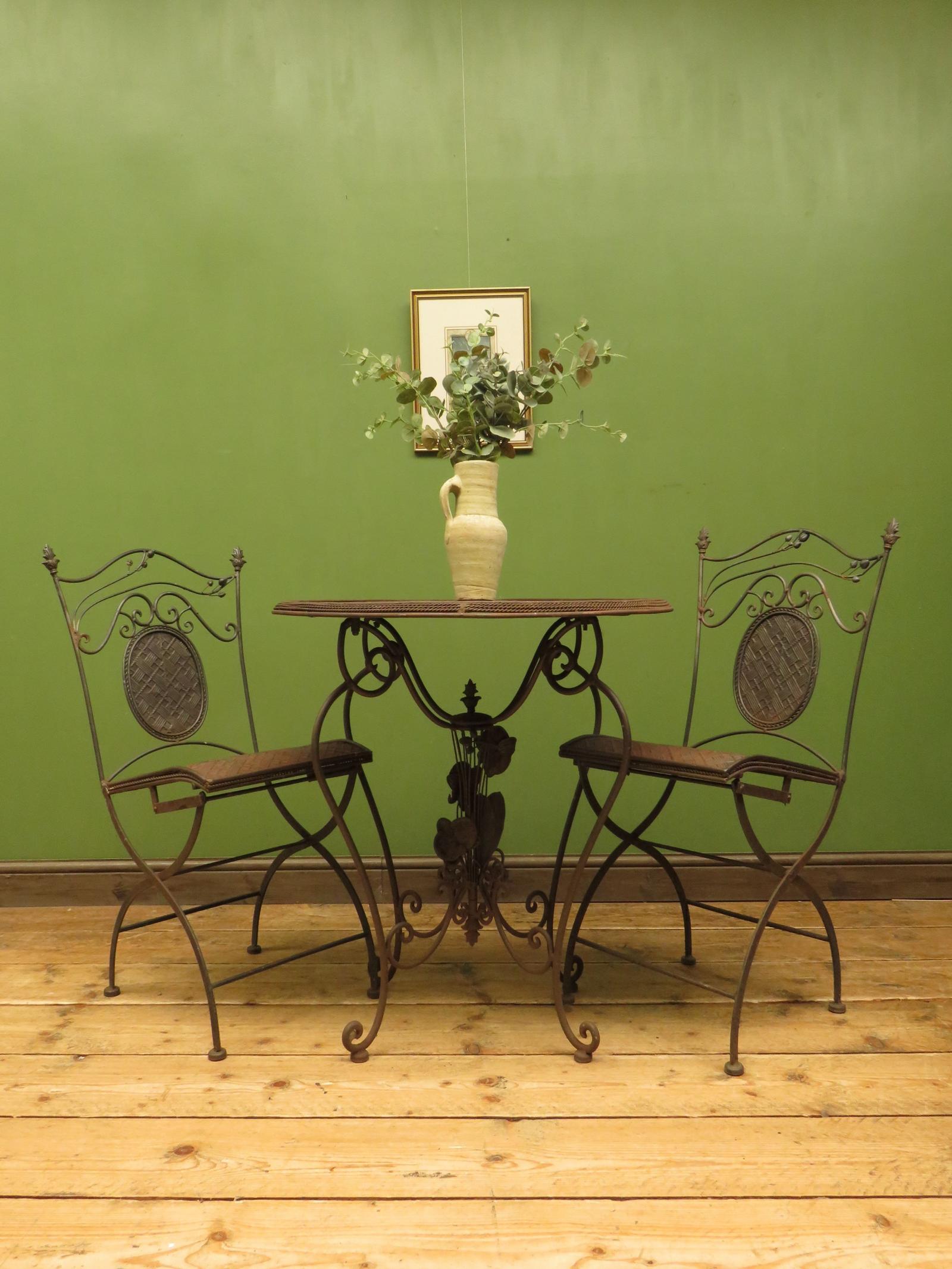 Ornate Metal Bistro Table & Two Chairs